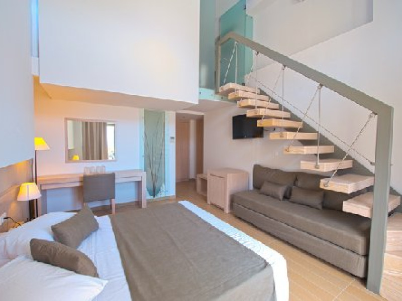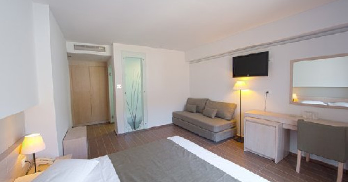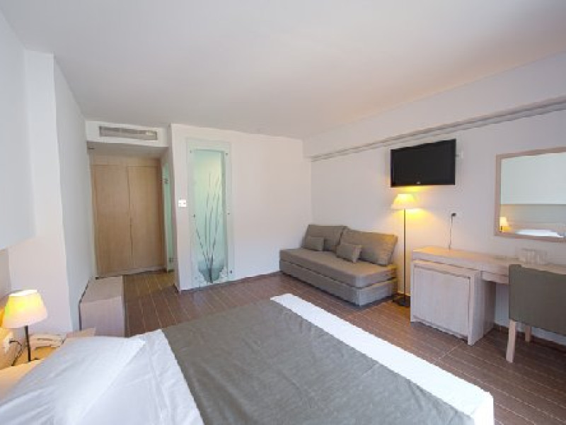 Dotari camere: Camerele au un design modern si sunt dotate cu aer conditionat, telefon, televizor, frigider, balcon/terasa. Camerele duble au 29 m2 si pot fi cazate maxim 3 persoane, camerele family sunt open plan au 33 m2 - capacitatea maxima este de 3 adulti + 1 copil (patul suplimentar este o canapea in forma de L), apartamentele maisonette au 45m2 si o capacitate maxima de 4 adulti + 1 copil.