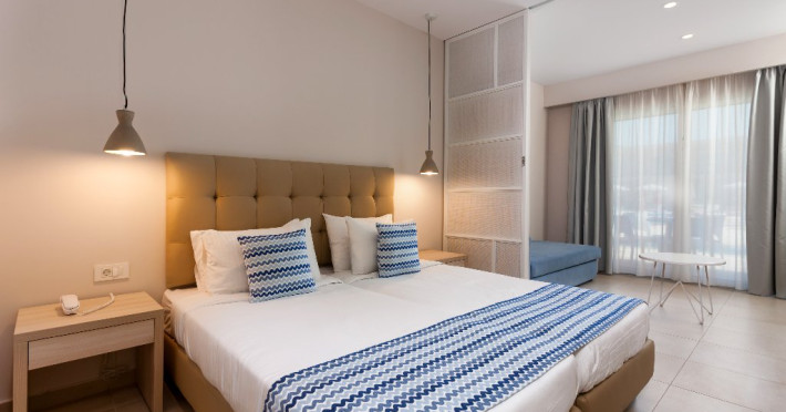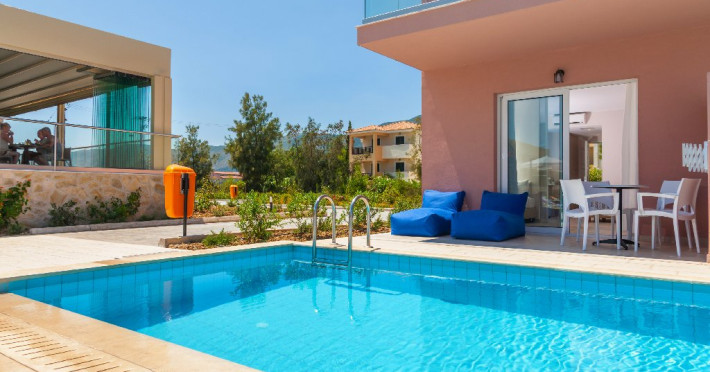 Localizare: Situat la doar 20 m de plaja cu nisip, in inima orasului Alykanas si la aproximativ 20 km de aeroportul Zakynthos.