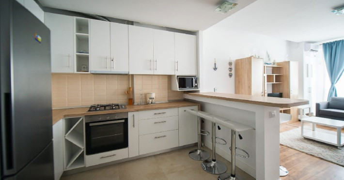 Apartamentul este complet mobilat si utilat modern, oferind un dormitor cu pat matrimonial si un living spatios cu doua canapele extensibile. Aveti la dispozitie si doua televizoare smart.