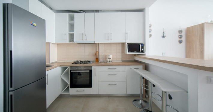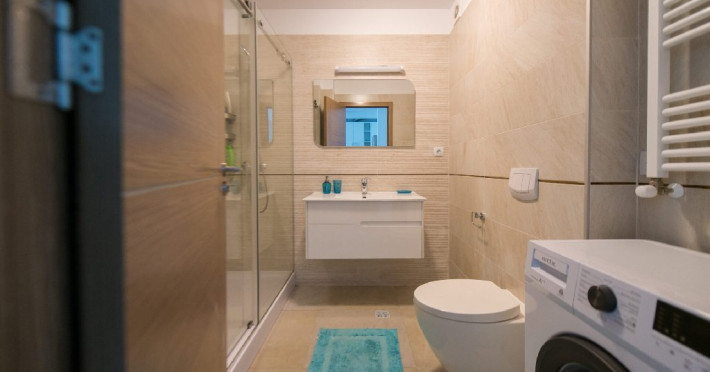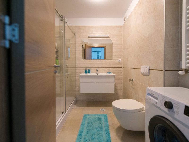 Bucataria este complet utilata, iar baia dispune de o cabina de dus. Apartamentul are o masina de spalat si Wi-Fi gratuit pentru a va mentine conectati.
