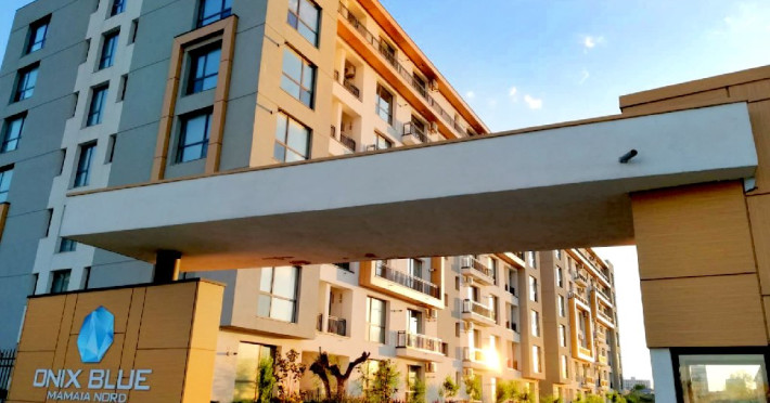 Amplasat in statiunea Mamaia Nord, pe strada D25, nr.5, bl. B4, etajul 6, acest apartament se afla intr-un bloc cu lift si face parte din complexul Onix Blue.