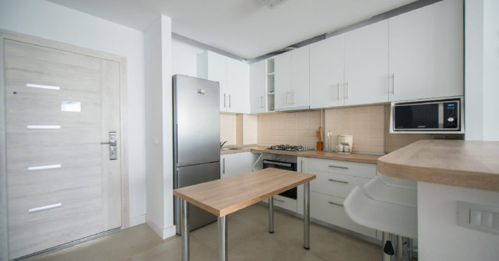 Apartament cu 2 camere situat la doar 50 de metri de plaja si promenada, fiind AZn apropierea plajelor Crema si Kazeboo. Apartamentul are 2 camere (un dormitor + living).