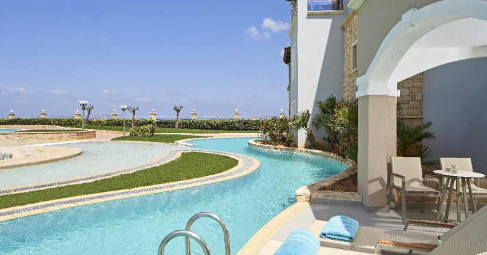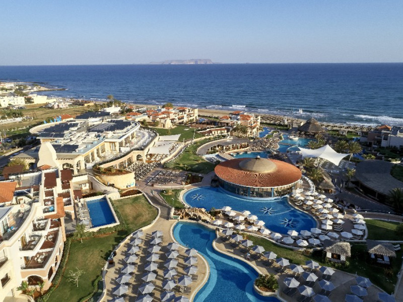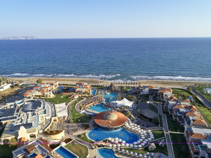 Descriere: Atlantica Caldera Palace este un resort de lux de 5 stele situat pe plaja cu nisip si pietris din Hersonissos, destinat familiilor si cuplurilor care doresc un sejur All Inclusive deosebit. Resortul ofera o gama variata de camere si suite elegante, inclusiv optiuni cu acces direct la piscina sau piscina privata pentru un plus de confort si intimitate. Facilitatile moderne includ patru piscine exterioare, restaurante si baruri cu preparate internationale si tematice, centre de sport si divertisment, precum si un centru Spa complet cu sala de fitness gratuita. Copiii si adolescentii beneficiaza de zone dedicate, programe de animatie si piscine cu tobogane, iar oaspetii adulti se pot relaxa in spa sau pe plaja, savurand atmosfera luxoasa a resortului.Localizare: Resortul Atlantica Caldera Palace se afla direct pe plaja din Hersonissos, o statiune vibranta situata pe coasta de nord a insulei Creta. Locatia sa permite o combinatie ideala intre relaxare pe malul marii si acces facil la activitati locale, restaurante, magazine si atractii turistice. Aeroportul International Heraklion se afla la aproximativ 23 km, iar centrul orasului Heraklion poate fi atins rapid pentru excursii culturale sau cumparaturi. Statiunea Hersonissos este renumita pentru viata sa de noapte, restaurantele traditionale cretane, cafenelele si sporturile nautice, oferind o combinatie perfecta intre liniste, divertisment si activitati recreative.