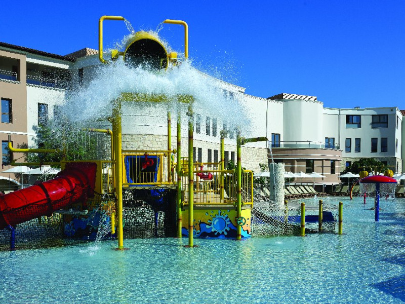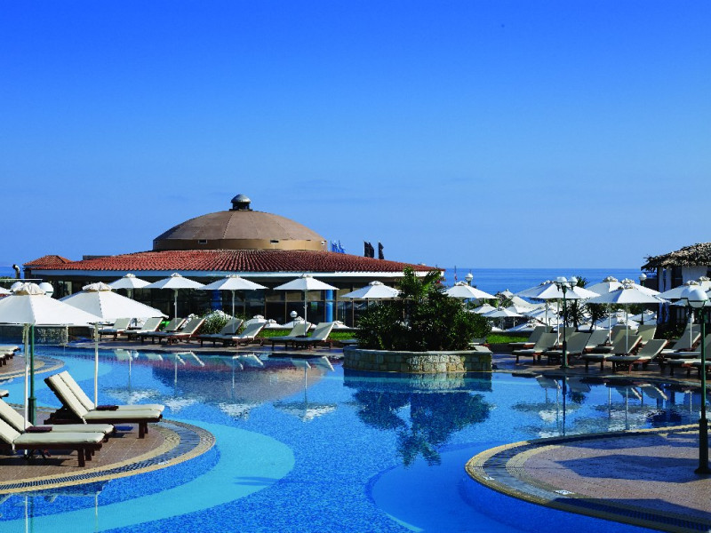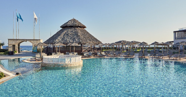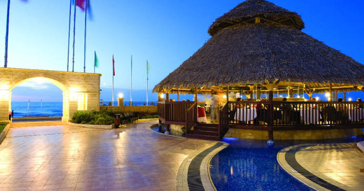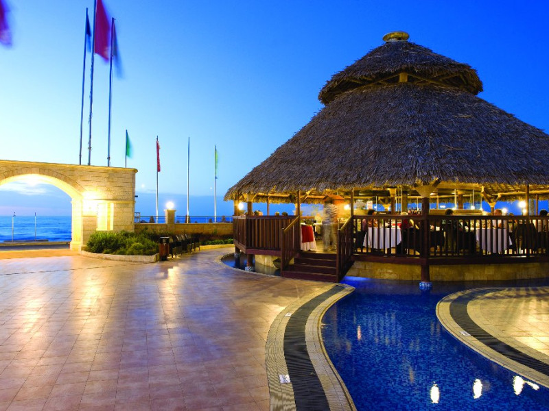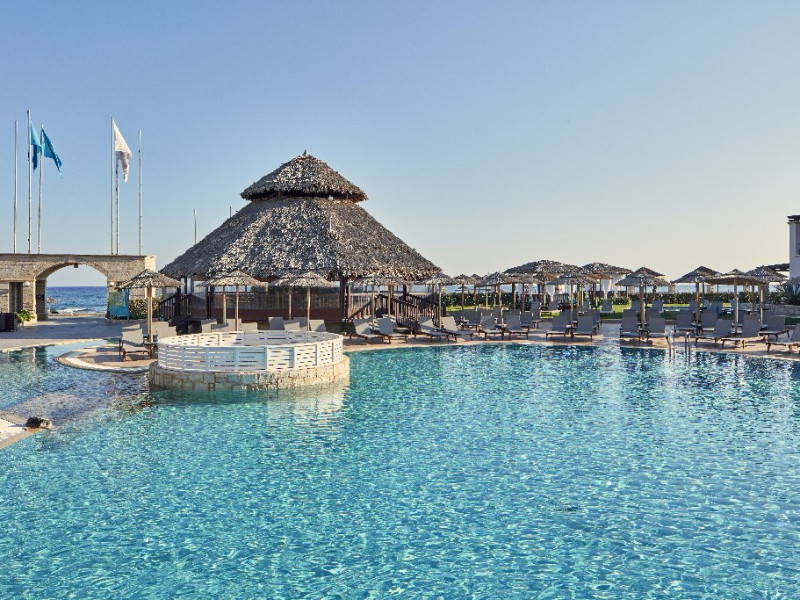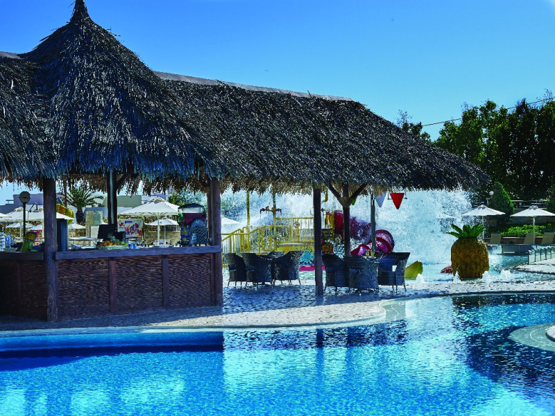 Facilitati hotel: Resortul ofera patru piscine exterioare, sezlonguri si umbrele gratuite la piscina si pe plaja, terenuri sportive (tenis, fotbal, baschet, volei pe nisip), mini golf, sala de fitness gratuita, centru Spa cu sauna, baie de aburi, piscina interioara incalzita, masaje si tratamente de infrumusetare (contra cost), sala de conferinte, boutique si mini market (contra cost). Restaurantele si barurile includ restaurant principal tip bufet si restaurante a la carte tematice, precum Tex Mex, Thai, taverna Oregano si Basilico (unele contra cost), precum si baruri si cafenele la piscina si in lobby. Programul All Inclusive include bauturi locale, sucuri, cafea si ceai, gustari si inghetata.