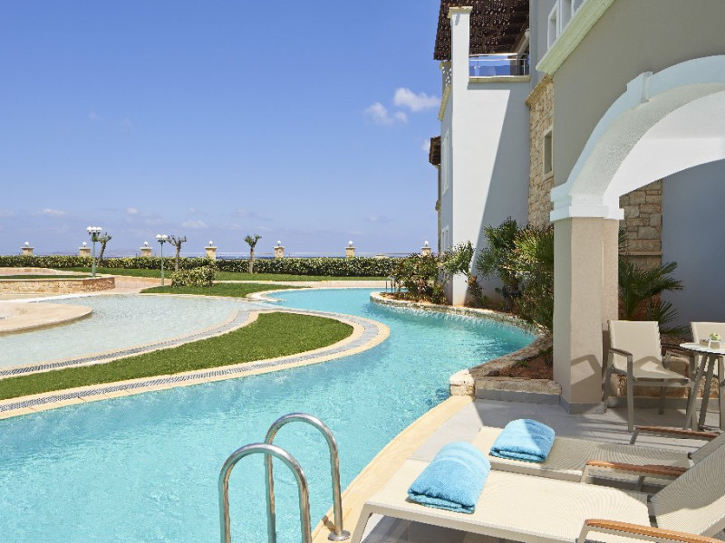 Dotari camera: Camerele si suitele sunt echipate cu aer conditionat individual, Wi-Fi gratuit, TV satelit, telefon, seif gratuit, minibar cu apa, bere si sucuri, facilitati pentru cafea si ceai, baie cu cada sau dus, uscator de par, oglinda cosmetica, halate si papuci, balcon sau terasa. Suitele Swim Up si Private Pool includ acces la piscina comuna sau privata si optiuni suplimentare precum meniu de perne si aparat de espresso (la cerere).