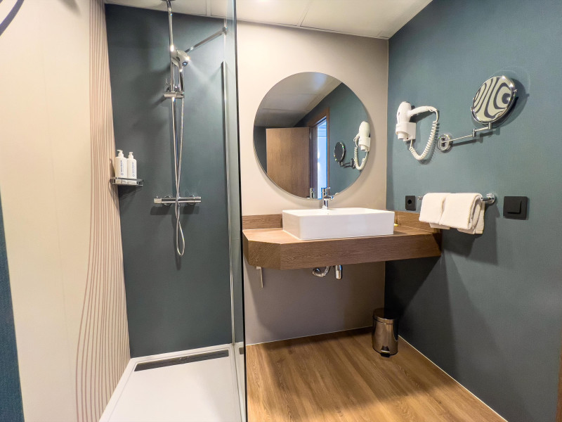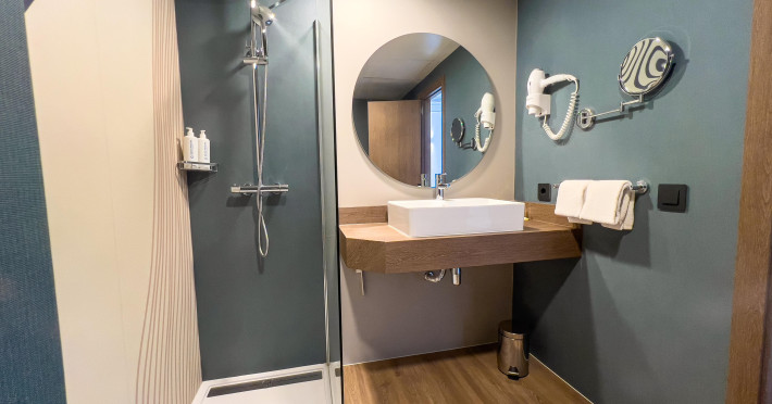 Camera dubla: baie/toaleta (uscator de par), aer conditionat, TV/satelit, telefon, minibar, seif contra cost, balcon.