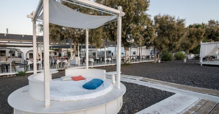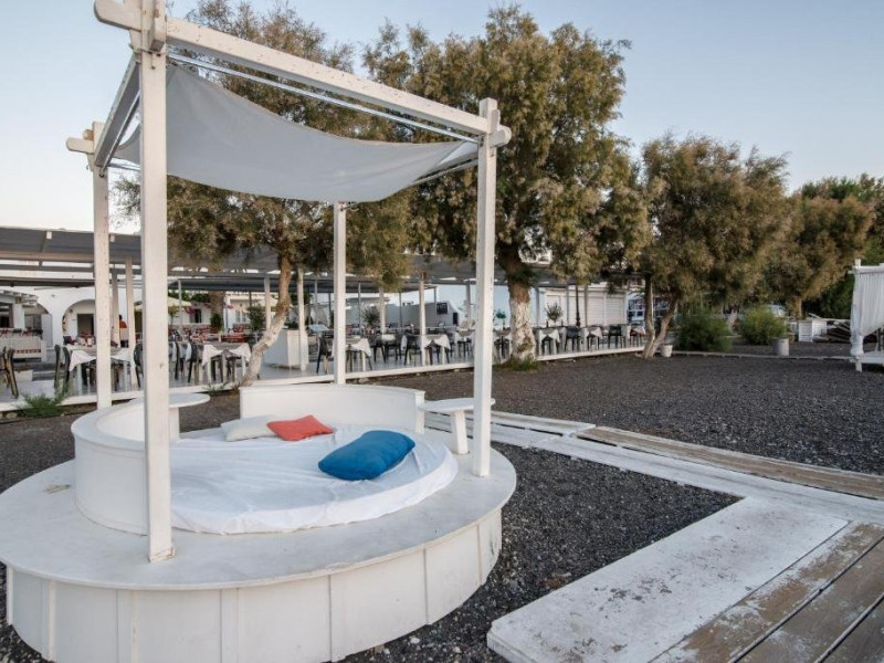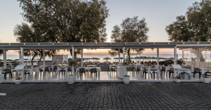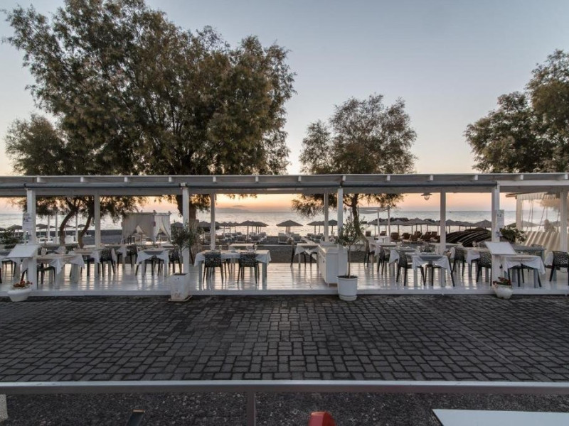 Localizare: pe plaja statiunii Kamari, la 5 km de aeroport si 8 km de orasul Fira.