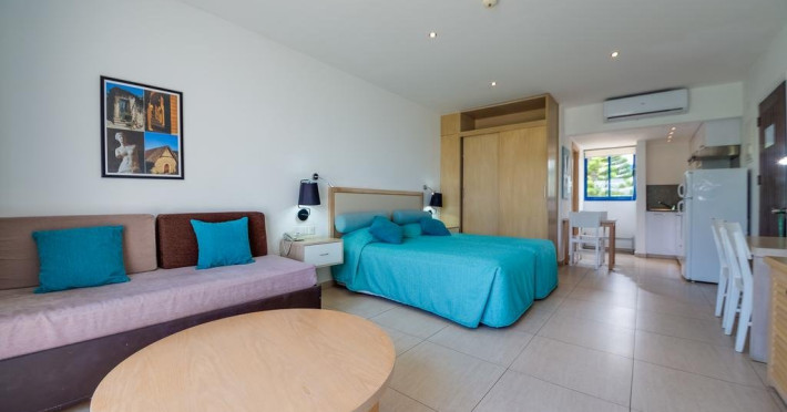 Dotari camere CALLISTO HOLIDAY VILLAGE: Hotelul dispune de 334 de apartamente/studio-uri. Studio-urile sunt dotate cu: lounge room cu plan deschis si cu chicineta, radio, frigider mic, telefon direct, AC, safe (contra cost), facilitati pentru preparare cafea/ceai, aparat de cafea, TV satelit, baie cu dus, balcon sau terasa. Apartamentele cu 1 dormitor sunt dotate cu: o camera cu 2 paturi twin si AC, frigider mic, telefon direct, radio, safe (contra cost), lounge cu plan deschis si chicineta, baie cu dus, TV satelit, facilitati pentru preparare cafea/ceai, prajitor de paine, masina de cafea, balcon sau terasa.