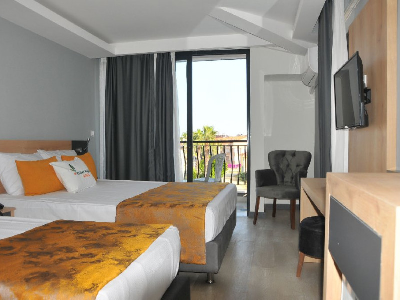 Facilitati hotel: receptie 24 h, lobby, WIFI gratuit, piscina exterioara, sezlonguri si umbrelute gratuite la piscina, restaurant principal cu terasa, restaurant a la carte (cu plata), bar la piscina cu terasa, baie cu aburi, animatie, animatie pentru copii (de 2 ori pe saptamana), loc de joaca. Servicii cu plata: spalatorie, rent a car, telefon, bauturile imbuteliate, cafea turceasca, sucul proaspat din fructe, cocktail-uri, room service, toate bauturile intre 22.00 10.00, babby sitter