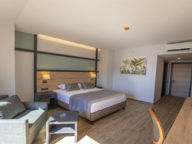 Facilitati hotel: Oaspetii pot beneficia de restaurant principal, baruri, piscina exterioara, sezlonguri, umbrele, sala fitness, sauna, darts, boccia, volei, tenis de masa, Wi-fi, gimnastica, piscina pentru copii, tobogane, loc de joaca, kids club.
