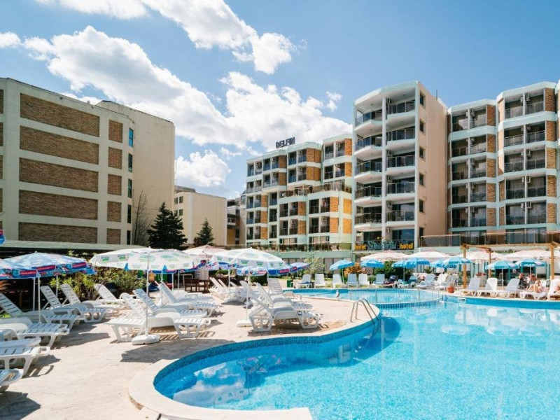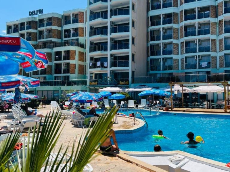 Hotel Delfin are o locatie in partea de sud a Sunny Beach, la aproximativ 1 km de Nessebar, la 2 km de centrul statiunii si la 35 km de aeroport.