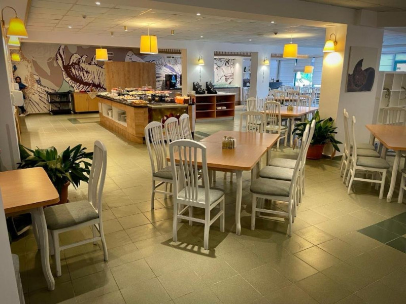 Cazare: Hotelul Delfin cu 7 etaje a fost construit in 1980 si a fost renovat ultima data in 2023, oferind cazare in 66 camere - 46 camere duble si 20 camere triple. Hotelul este deservit de 2 lifturi.
