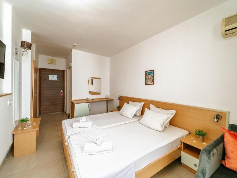 Plaja: cu nisip, la 100 de metri de hotel. Fundul marii este plat, cu acces lin. Bucurati-va de cea mai frumoasa si curata plaja de pe coasta bulgara a Marii Negre, castigatoare a premiului Blue Flag.
