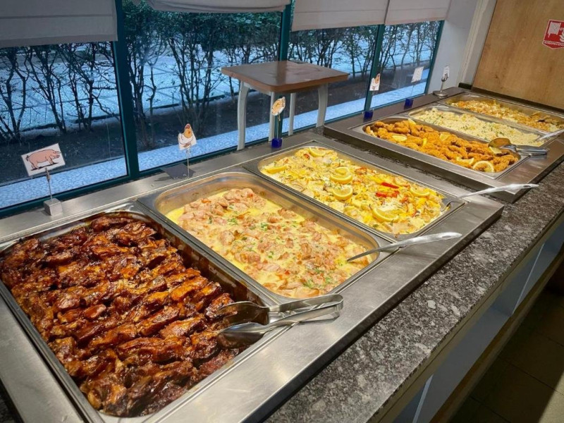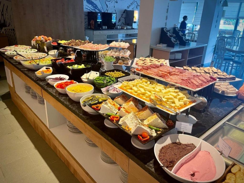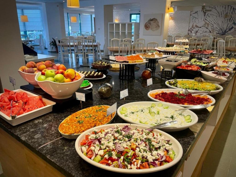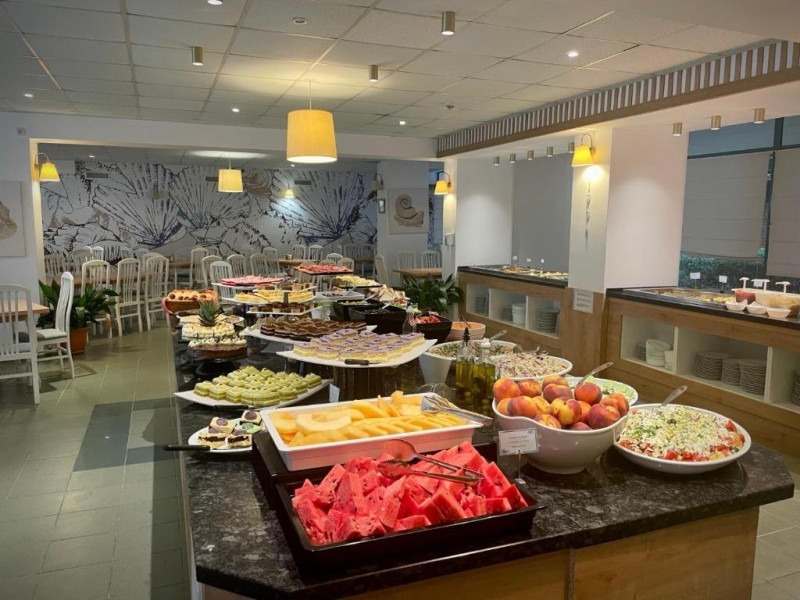 - Mic dejun /8:00 - 10:00/ - In Restaurantul Principal la bufet: produse lactate, sunca, salam, oua, brutarie, cereale, fructe, legume, ciocolata topita, dulceata.