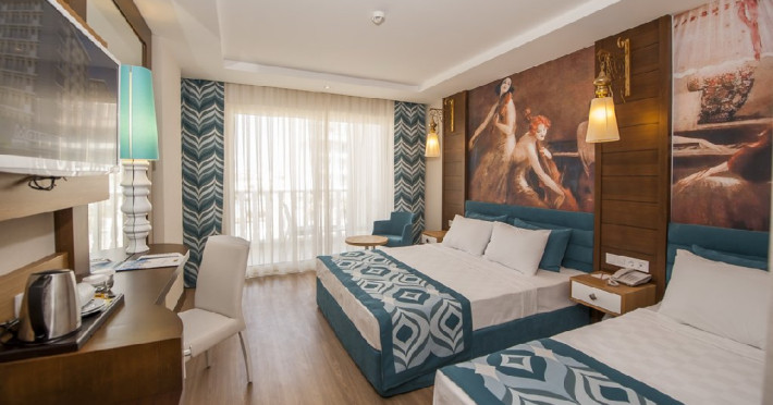 Facilitati hotel: Hotelul ofera oaspetilor sai urmatoarele facilitati: restaurant principal cu terasa, 3 restaurante a la carte, 3 bauri, magazine, club de noapte, piscina interioara, piscina exterioara cu 3 tobogane, piscina pentru copii, centru wellness, program de animatie, darts, tenis de masa, centru fitness, sauna, baie turceasca, mini club, piscina pentru copii. Servicii cu plata: toate bauturile din import, vinul imbuteliat, bauturile sevite dupa ora 24:00 si cele servite in cadrul clubului de noapte, fresh-urile din fructe, seif, telefon si fax, room service, servicii curatatorie, masaj si alte tratamente de intretinere, sporturi acvatice.