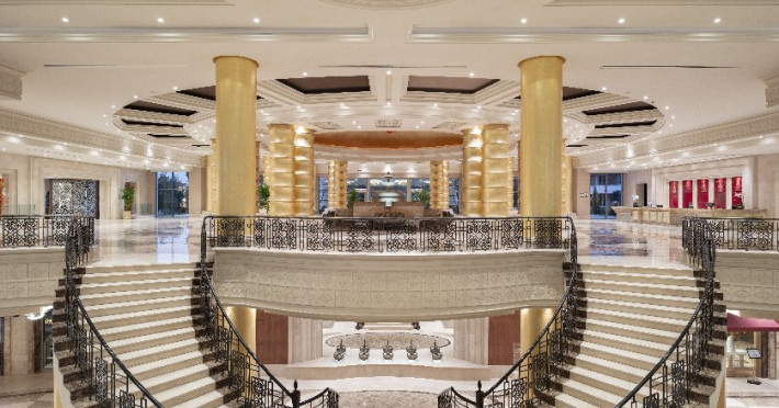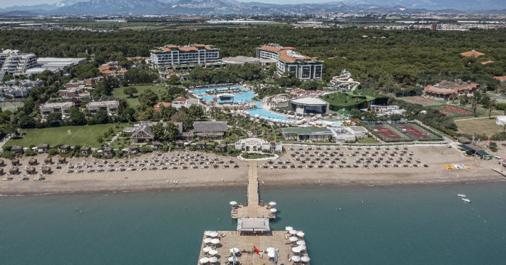 Facilitati hotel: receptie special amenajata pentru copii, restaurant principal (cu bufet pentru copii, meniuri dietetice, live cooking), 7 restaurante a la carte (turcesc, japonez, mexican, italienesc, mediteranean, pescaresc, barbeque), 3 restaurante-snack, patiserie, 1 restaurant pentru copii, 12 baruri, piscina exterioara (6.630 mp), aquapark cu 5 tobogane pentru adulti, aquapark cu 4 tobogane pentru copii, piscina interioara (210 mp), 2 piscine exterioare pentru copii, piscina interioara pentru copii (230 mp), centru Spa, sauna, hamam, centru fitness, aerobic, yoga, gimnastica in apa, tenis, mini golf, volei pe plaja, biliard, tenis de masa, mini fotbal, basket, darts, cursuri de gatit, cinema, discoteca, programe de animatie, 2 terenuri de tenis, teren multifunctional (pentru tenis, fotbal, basket, volei), boccia, catamaran si windsurfing (cu licenta), cinema in aer liber, spectacole in timpul serii, petreceri organizate pe dig, petreceri la piscina, petreceri cu DJ, festivaluri, spectacole in amfiteatru, muzica live, karaoke, cursuri de belly dance, 8 sali de conferinte cu diverse capacitati si echipamente moderne.