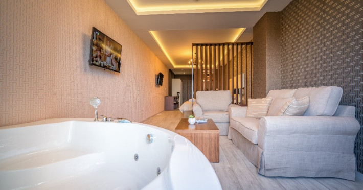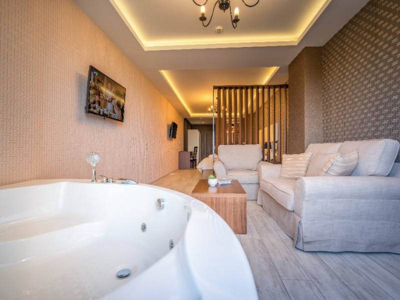 Dotari camere: Toate unitatile de cazare ofera urmatoarele: aer conditionat/incalzire individuala (gratuit), Wi-Fi (gratuit), linie directa telefon, seif electronic (gratuit), 2 televizoare cu ecran plat (cu canale prin satelit), masa de calcat, birou, minibar (contra cost),baie privata cu cabina dus cu hidromasaj, uscator de par, oglinda cosmetica, articole de toaleta, papuci, halat de baie, telefon la baie, privat Jacuzzi interior incalzit, prosoape de piscina, balcon, room service 24 de ore (contra cost), serviciu de menajera (de doua ori pe zi), schimbarea prosoapelor (de doua ori pe zi), lenjerie de pat schimbare (zilnic), serviciu de spalatorie si curatatorie chimica (contra cost), fructe proaspete si bautura de bun venit la sosire.