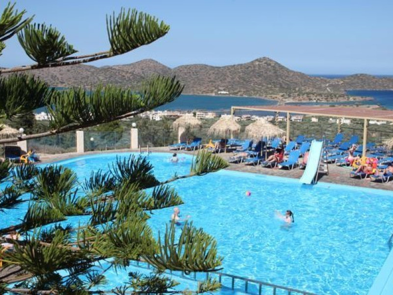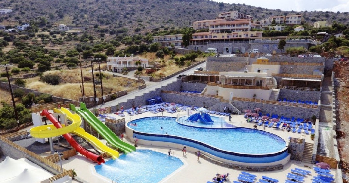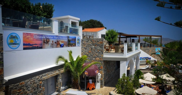 Facilitati hotel: Elounda Waterpark Residence asigura clientilor receptie 24 de ore, salon, colt internet, zona vizionare TV, mini market, magazin de suveniruri, 2 piscine cu apa sarata dintre care una cu jacuzzi, waterpark (intrare gratuita), fun park (numai pentru copii, cu plata), sezlonguri, umbrele si prosoape gratuite la piscina, gradina, parcare, amfiteatru, biserica, autobuz spre si dinspre centru gratuit. Hotelul dispune de un restaurant principal Ariadne tip bufet (bucatarie greceasca si internationala), Thalassa bar-restaurant, Cafenea raki-meze (bucatarie cretana), bar la piscina si snack bar in fun park. Animatie si distractie: program de animatie (jocuri acvatice si aerobic), seri grecesti cu muzica si dans gratuite, discoteca, karaoke, jocuri, fun park, water park, jocuri de interior ( fotbal de masa, biliard, arcades).