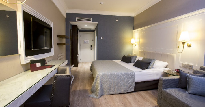 Facilitati hotel:Hotelul ofera oaspetilor sai urmatoarele facilitati: restaurant principal, 1 restaurant a la carte, cafenea, lobby bar, bar pe plaja, bar la piscina, piscina exterioara, piscina pentru copii, piscina interioara, magazine, centru spa, sauna, hammam, sala fitness, internet wireless in spatiile comune, sala de jocuri, mini club pentru copii, discoteca, program de animatie.
