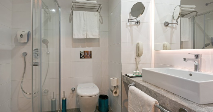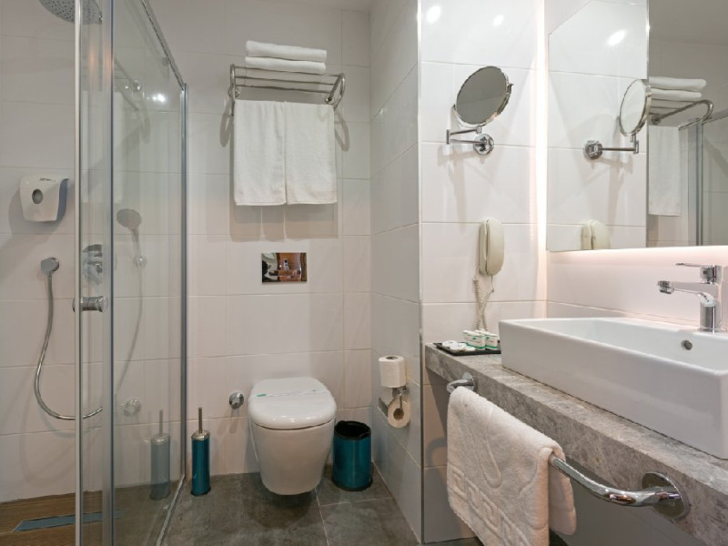 Dotari camere: Hotelul are un total de 101 camere, toate dotate cu aer conditionat, TV, minibar, seif, internet, uscator de par, fierbator, baie privata cu cabina de dus sau cada, pat matrimonial sau paturi twin.