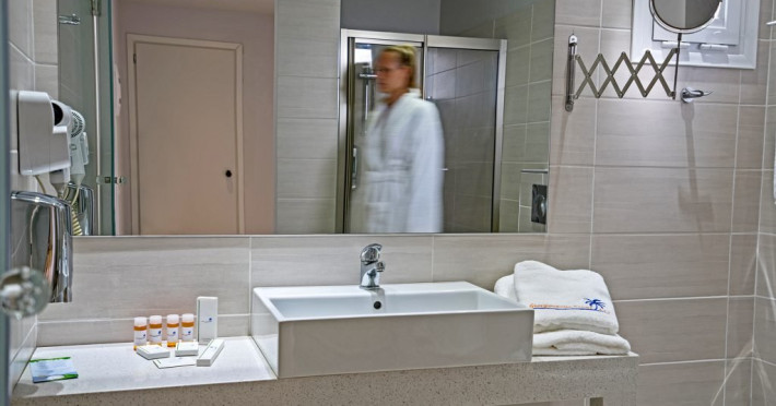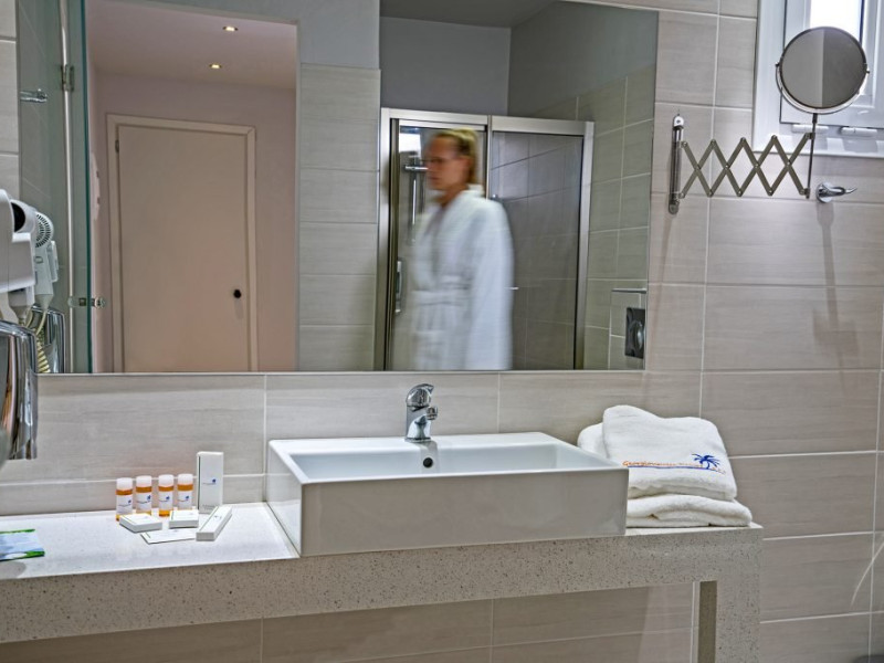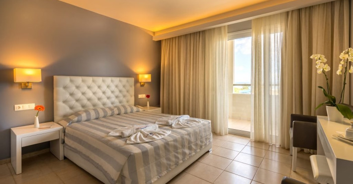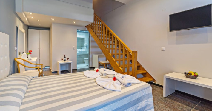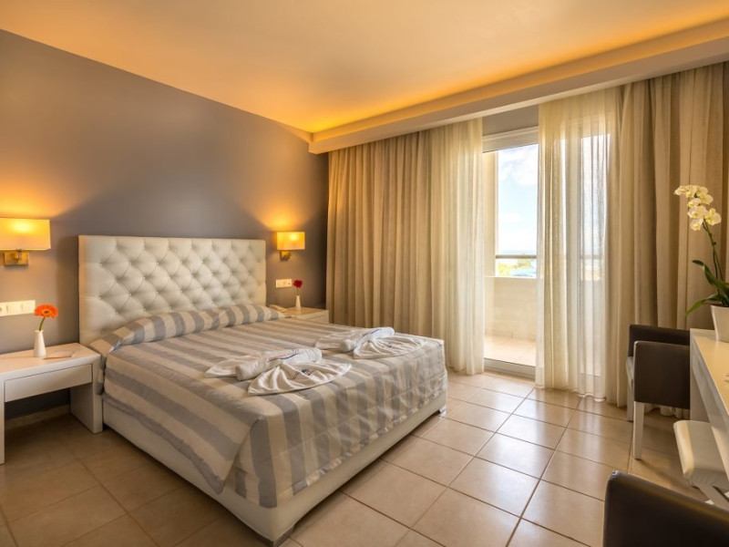 Dotari camere: Giourgioupolis Resort dispune de camere de diferite tipuri: camera dubla standard (20 mp), camere family (30 mp) si maisonette (35 mp), amenajate modern si cu bun gust. Camerele sunt dotate cu: aer conditionat, frigider, televizor LCD cu programe prin satelit, internet Wi-Fi (gratuit), telefon, uscator de par, papuci si halate de baie, seif (contra cost pentru rezervarile cu demipensiune si gratuit pentru rezervarile cu all inclusive), balcon/terasa.