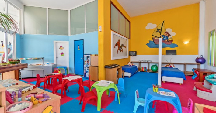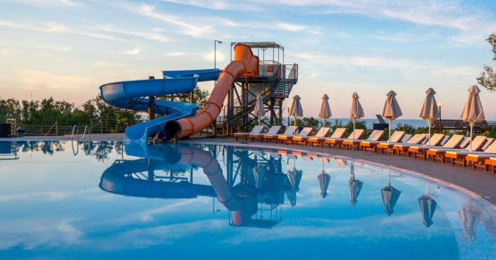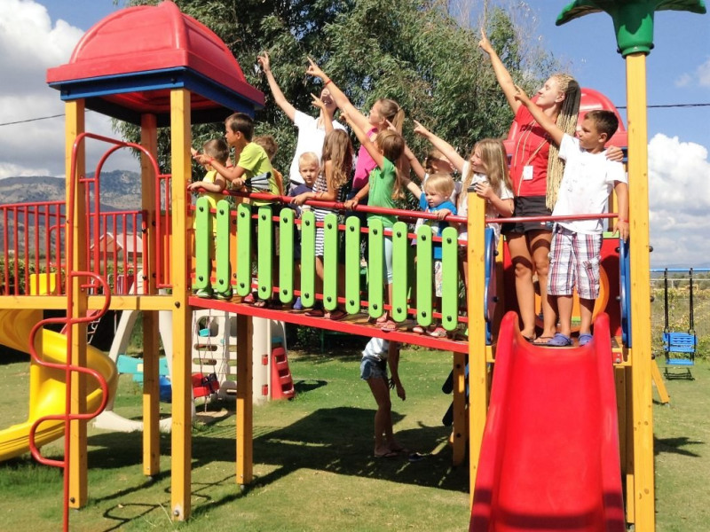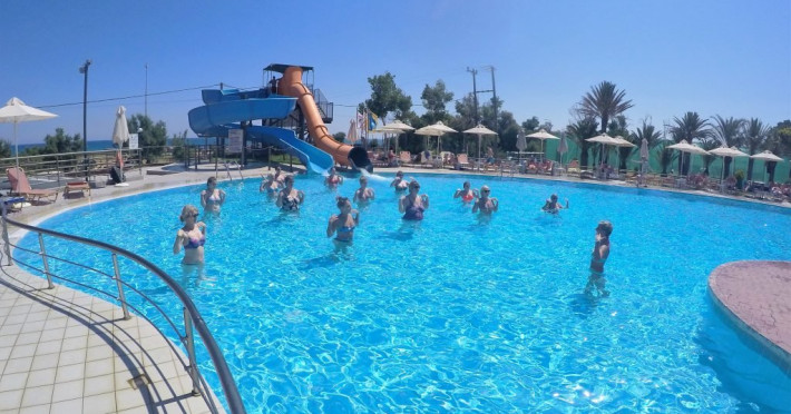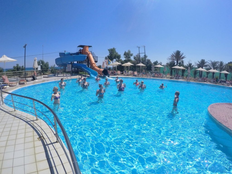 Facilitati Giourgioupolis Resort: Restaurant bufet cu preparate internationale si locale, SHO W cooking, 2 piscine exterioare, teren de tenis, sala de fitness, internet Wi-Fi gratuit in tot hotelul, loc de joaca pentru copii, mini club, programe de animatie, aquapark cu tobogane, centru spa, teren de tenis, volei pe plaja.