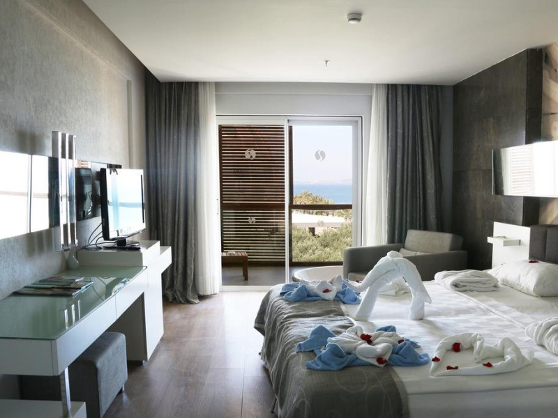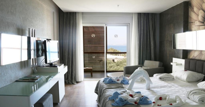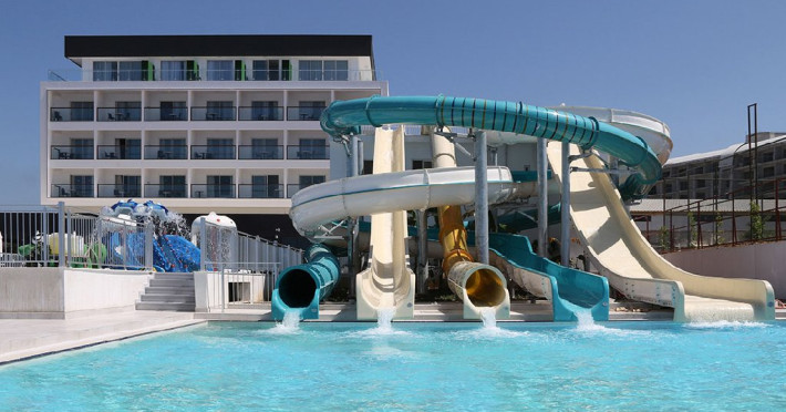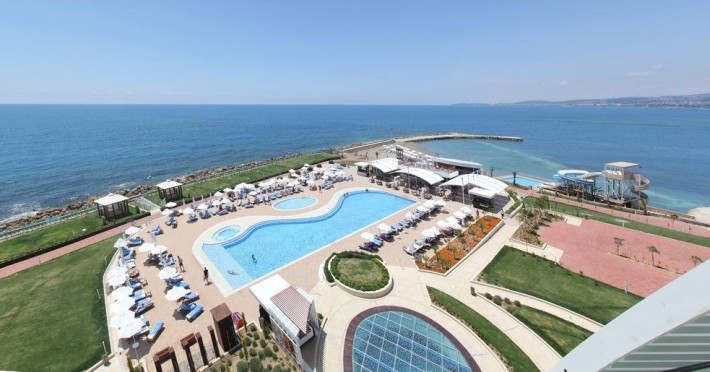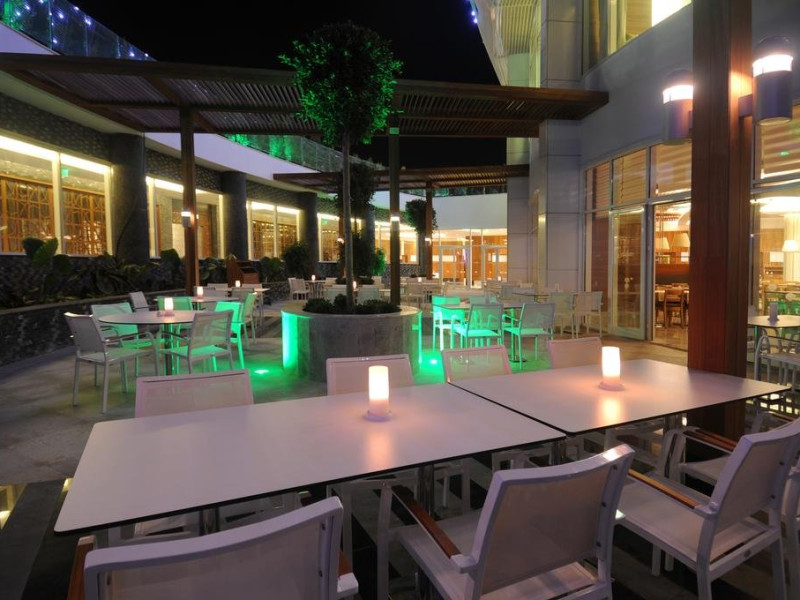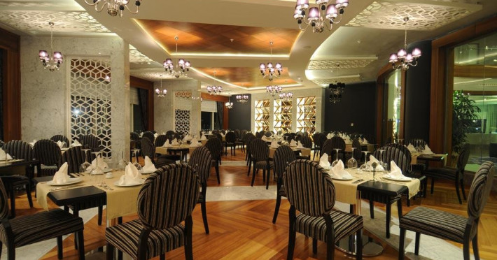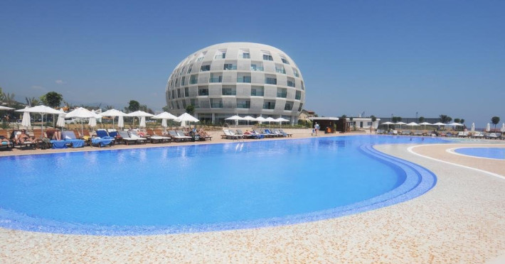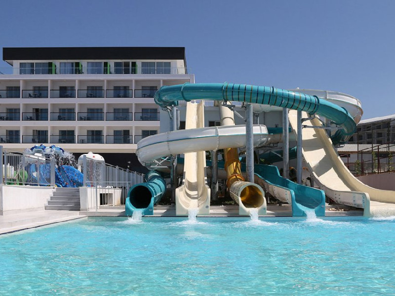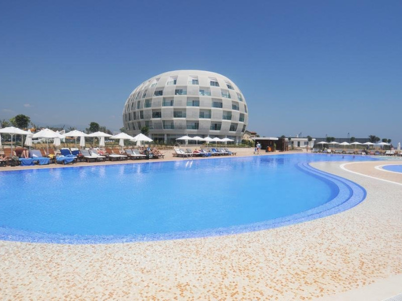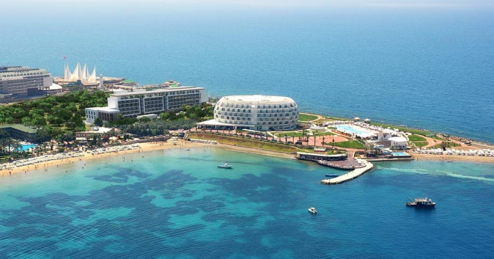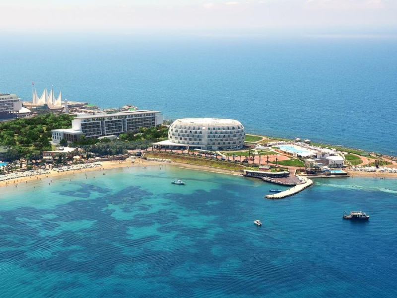 Facilitati hotel: Hotelul ofera oaspetilor sai urmatoarele facilitati: 2 restaurante principale (cate unu in fiecare cladire), restaurant a la carte, inghetata, patiserie, gozleme, baruri, discoteca, piscine exterioare, aquapark, piscina interioara, baie turceasca, sauna, centru fitness, internet, biliard, teren de tenis, basket, volei pe plaja, programe de animatie, miniclub. Servicii cu plata: bauturile de import, room service, masaj si alte tratamente in centrul Spa, VIP Spa, servicii medicale, servicii de curatatorie.