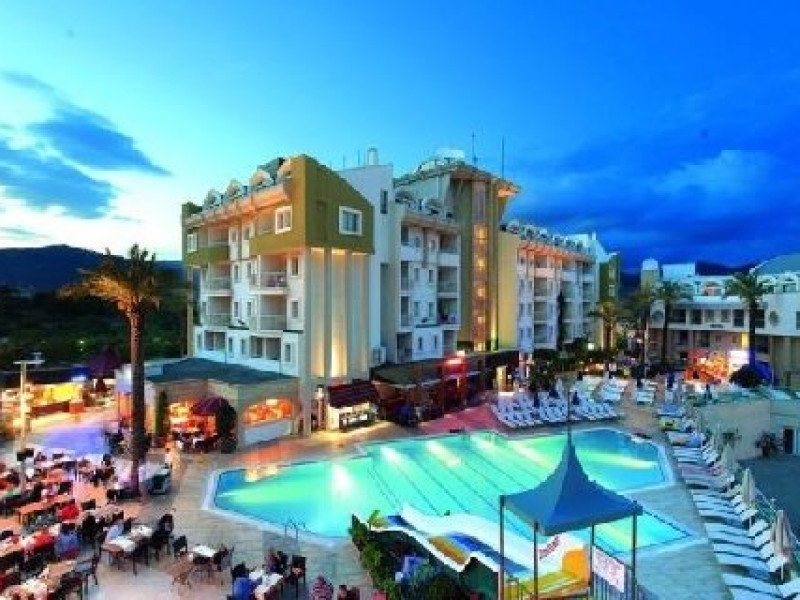 Hotelul se afla la 2,5 km de Marmaris, 1 km de plaja. Camerele sunt dotate cu aer conditionat individual sau centralizat, telefon, uscator de par, minibar, seif (cu plata) TV satelit, baie cu cada sau dus, mocheta, conexiune la internet (cu plata), chicineta, ibric electric, aragaz electric, microunde, masina de spalat, balcon. Coafor, salon de infrumusetare, curatatorie, mini club, restaurante interioare si exterioare, un restaurant cu specific, 5 baruri, discoteca, echipa de animatie, internet, sauna, baie turceasca, 2 piscine si piscina cu jacuzzi interioara, 2 piscine cu caderi de apa, 2 piscine pentru copii si loc de joaca. www.cettia.com