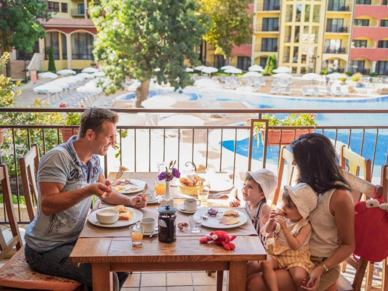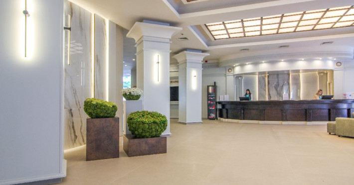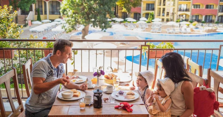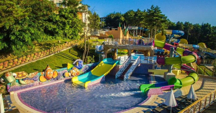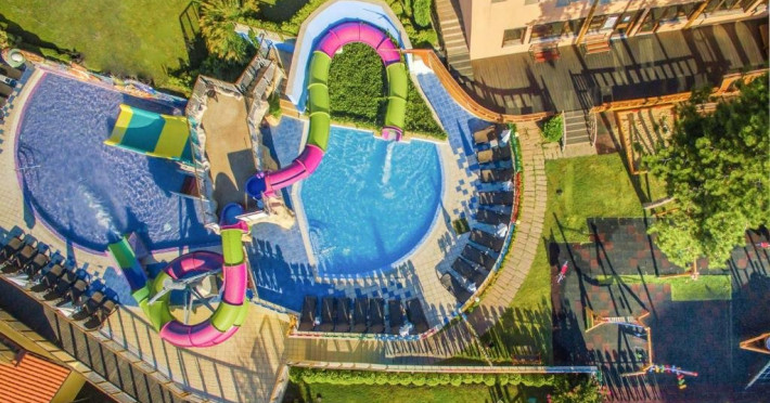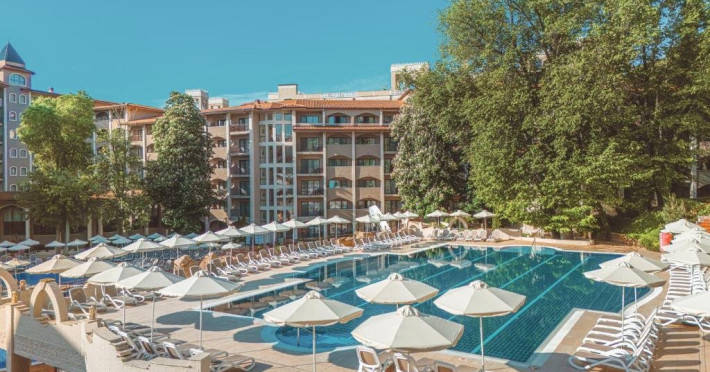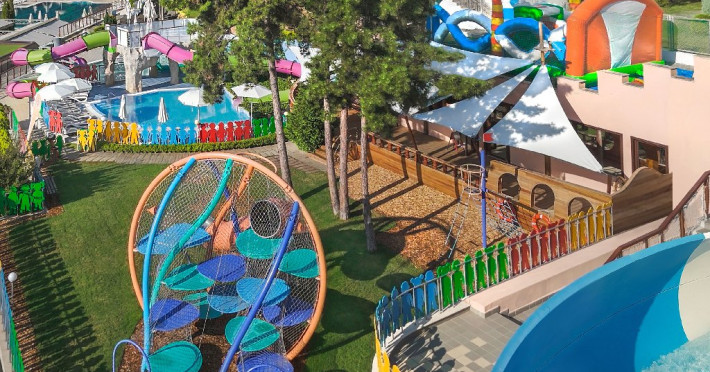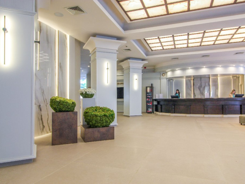 Despre hotel: Parc acvatic; complet renovat in 2023: hol, restaurant principal si 3 restaurante a la carte noi, receptie 24 de ore, inchirieri auto, curatatorie chimica, colt de internet, scena de animatie in aer liber, terasa cu gustari, patiserie, restaurant principal, A-La-Carte asiatic Restaurant, restaurant italian a la carte, Restaurant Fish A-La-Carte, bulgara A-La-Carte, salon bar, bar la piscina, bar pe plaja, bar Teen Soda. Patru sali de conferinte - Varna (16 locuri), Sofia (40 locuri), Bulgaria (120 locuri), Bar salon - (400 locuri). Receptie 24 de ore si securitate 24 de ore.