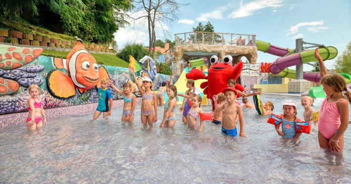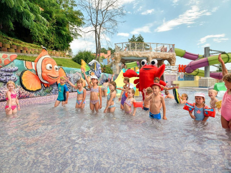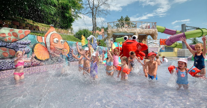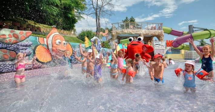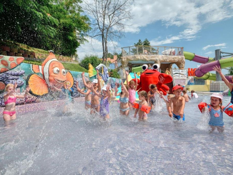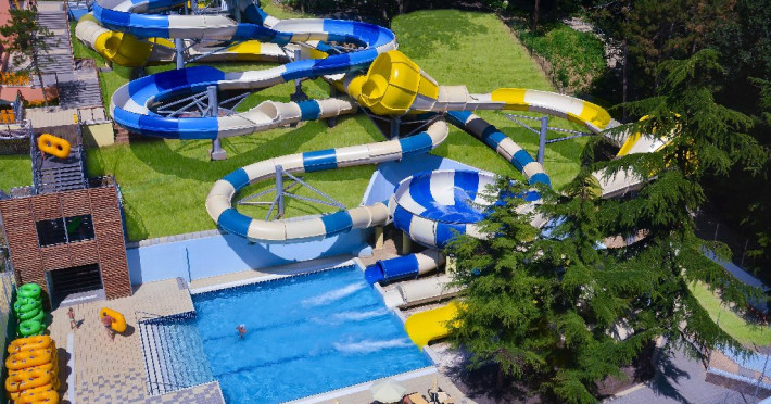 Zona adulti (inaltime minima 1,40 m) si zona copii, fiecare cu cate 3 tobogane.