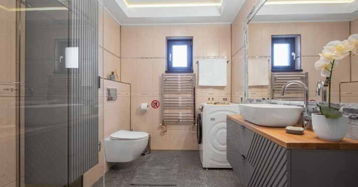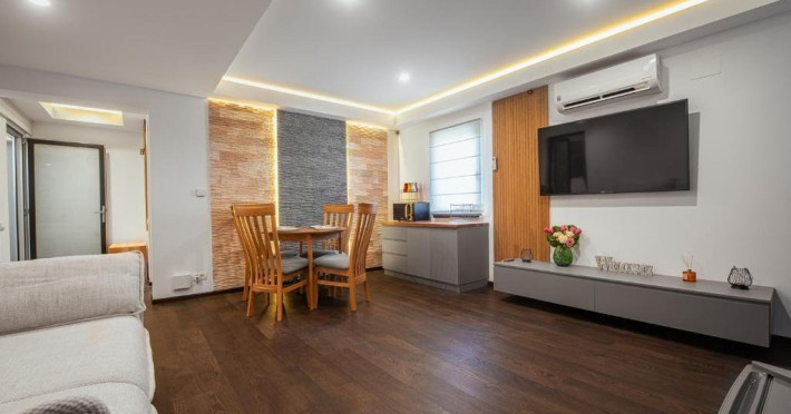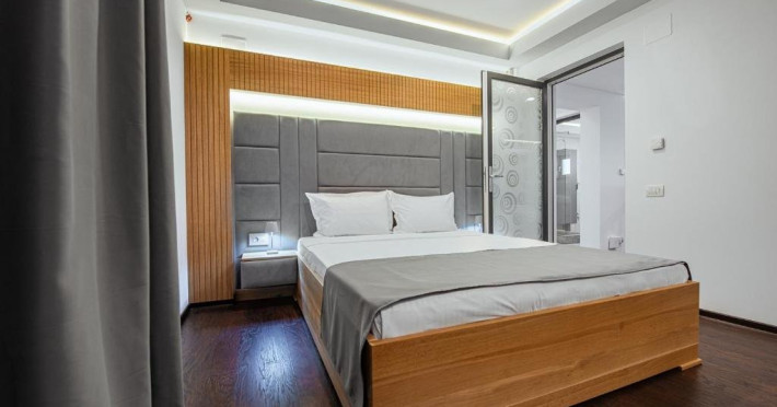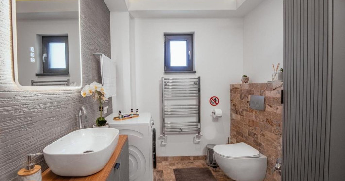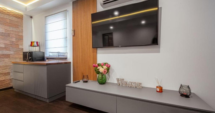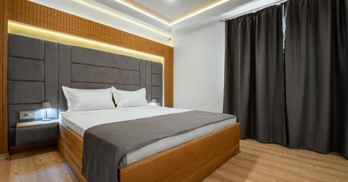 Dotari camere: Fiecare apartament este compus din 1x Dormitoar cu pat matrimonial, 1x Living cu canapea extensibila si zona de servit masa, chicineta utilata, 1x baie cu cabina de dus, aer conditionat, minibar, cuptor cu microunde, espressor de cafea, masina de spalat, TV Smart UHD, internet Wi-Fi de mare viteza, uscator de par, produse de igiena gratuite, ncalzire prin pardoseala cu centrala proprie.