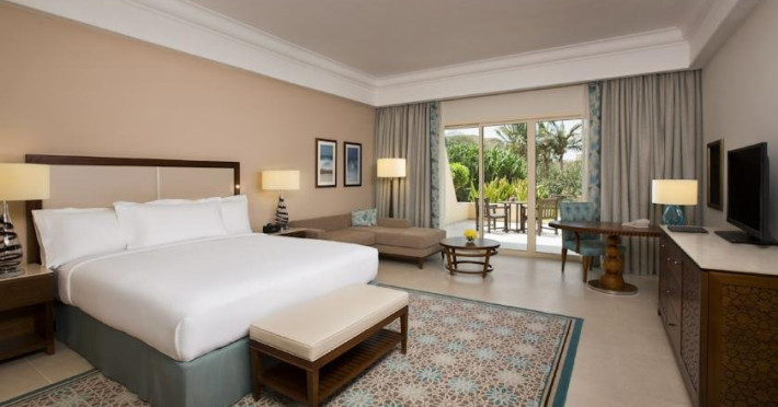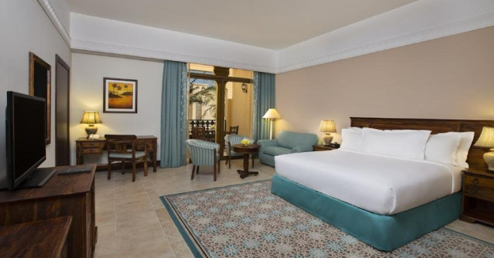 Descriere: Acest complex de 5 stele din Ras Al Khaimah are 500 de metri de plaja privata cu nisip si ofera 2 piscine, gradini amenajate intinse si facilitati de sporturi nautice. Camerele sunt luminoase si aerisite si au balcon. Localizare: Hilton Al Hamra Beach and Golf Resort este situat la doar 40 de minute de mers cu masina de Aeroportul International Dubai si de centrul orasului Dubai. Zona centrala a orasului Ras Al Khaimah se afla la 15 minute de mers cu masina. Dotari camere: Camerele de la Hilton Al Hamra Beach and Golf Resort sunt spatioase si includ aer conditionat, lucrari de arta inramate, TV prin satelit si ferestre din podea pana in tavan. Toate au baie privata cu gresie si beneficiaza de room service disponibil nonstop. Facilitati hotel: Oaspetii pot lua masa la restaurantul Al Shamal, deschis pe toata durata zilei, la restaurantul de pe malul marii Le Chalet, la popularul restaurant libanez Al Jazeera, precum si la Trader Vics Mai Tai Lounge, care ofera cele mai bune delicatese in stilul insulei. Hilton Al Hamra Beach and Golf Resort este situat intre Muntii Hajjar si litoralul din Ras Al Khaimah. Optiunile de petrecere a timpului liber includ centrul Fitness by Hilton, Al Hamra Spa, Scirocco English si clubul de noapte Malibu. Website: www.alhamrafort.com