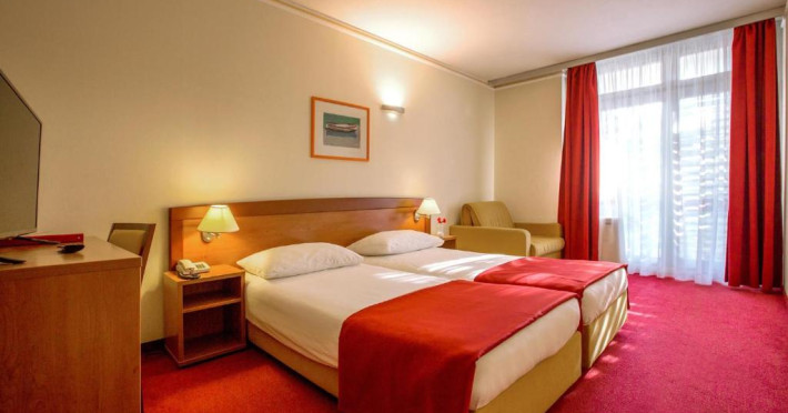 Facilități cameră dublă: pat matrimonial sau twin, baie proprie, TV prin satelit, telefon, balcon, aer conditionat, internet Wi-Fi.