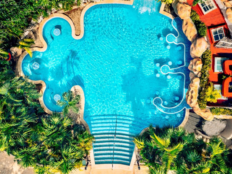 7 piscine (inclusiv piscina pentru copii si piscina cu tobogane si corabie pirat)