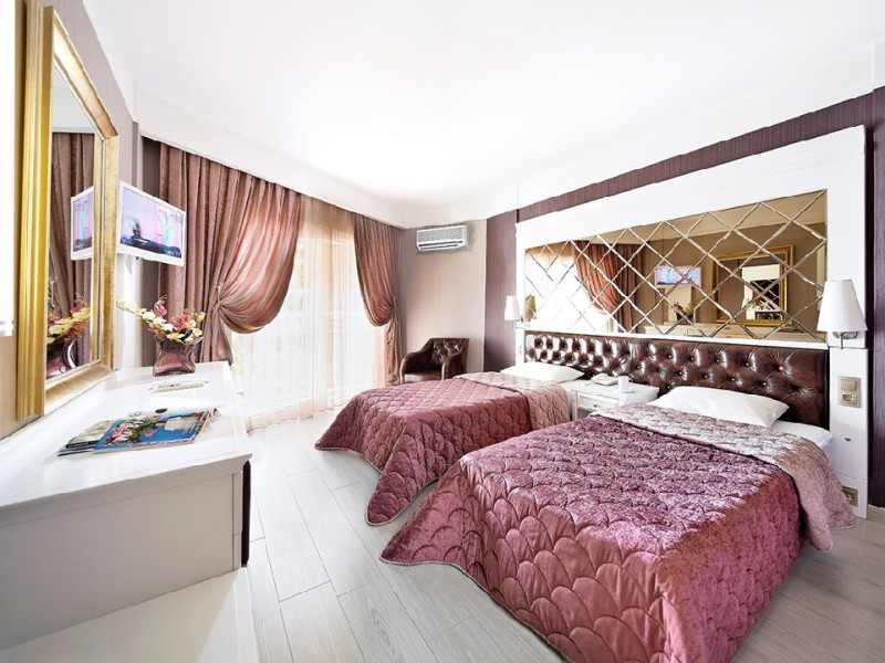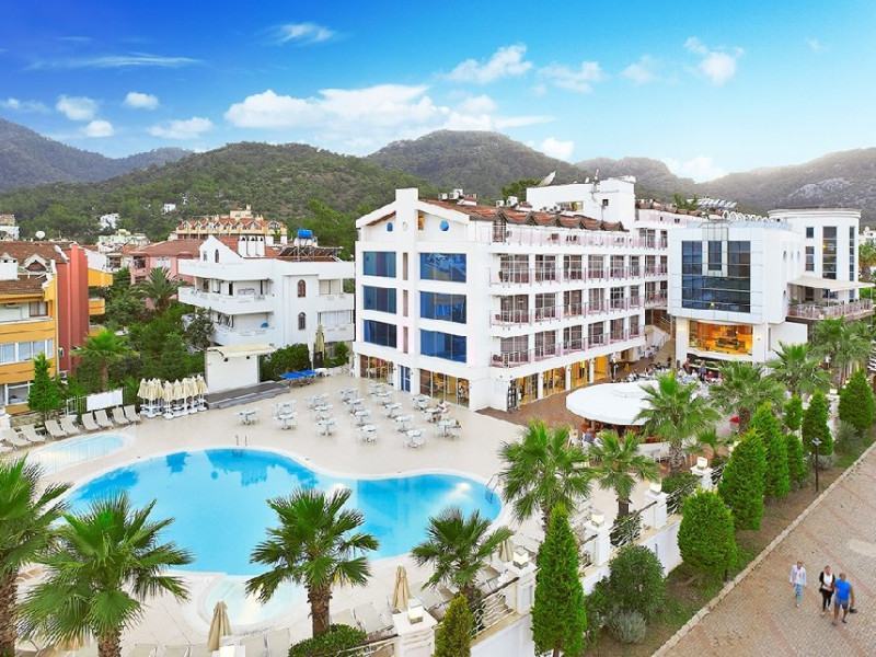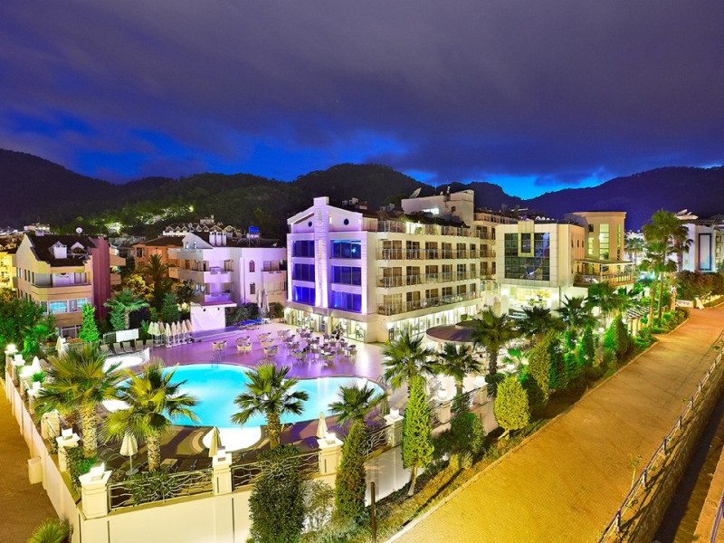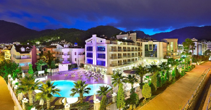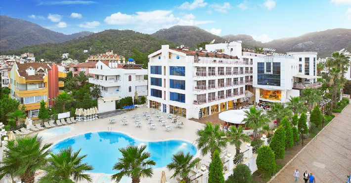 Localizare: Hotelul este situat la 2,5 km de centrul statiunii Marmaris. Cazare: Hotelul a fost renovat in anul 2014 si se adreseaza numai adultilor. Only gents NOT ALLOWED! Are o cladire, cu doua lifturi si un total de 114 camere. Standard land view are o suprafata de 20 mp si dispune de tv satelit, telefon, minibar, aer conditionat split (racire si incalzire), seif, dus, wc, uscator de par, balcon, cu vedere la uscat. Servicii: Hotelul dispune de restaurant principal unde se poate servii mancarea in stil bufet deschis, bar - copii nu sunt acceptati. Facilitati: Receptie 24 h, restaurant principal, bar la piscina, curatatorie, doctor, farmacie. Plaja si piscine: Hotelul este situat la 200 m de plaja cu nisip si pietris si are o piscina exterioara. Turistii pot folosi sezlongurile de pe plaja privata a hotelului ideal prime beach. Sporturi si activitati: Fara plata: sauna, baie turceasca, fitness. Cu plata: centru de infrumusetare, masaj. Pe timpul zilei se pot practica: darts, tenis de masa, jocuri la piscina, iar seara se desfasoara programe de spectacole si competitii de 6 ori pe saptamana. Pagina web: http://www.iphotels.com.tr/