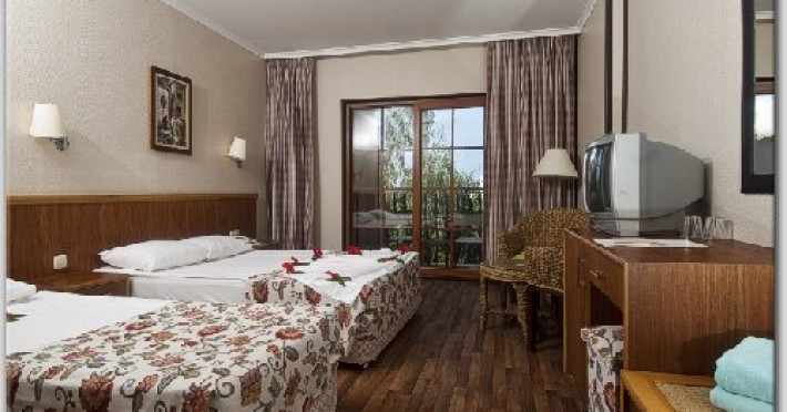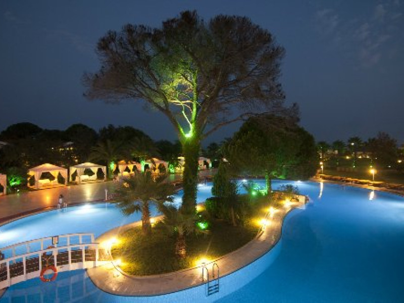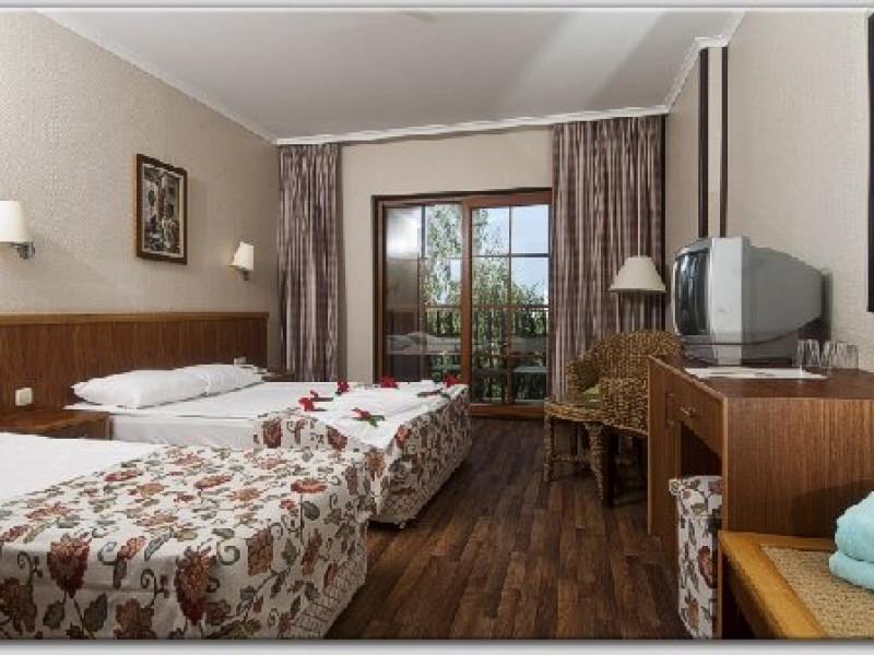 Hotelul a fost renovat in 2013 si este format dintr-o cladire principala de 6 etaje si bungalow-uri a cate 2 etaje si dispune de 595 de camere repartizate astfel: camere standard in caldirea principala (suprafata 26 mp); camere standard in bungalow-uri (suprafata 21 mp) camere family in cladirea principala (suprafata 38 mp) formate din 2 dormitoare interconectate camere family in bungalow-uri (suprafata 30 mp) formate din 2 dormitoare interconectate Localizare: pe plaja, la 45 km de centrul orasului Antalya si la 35 km de aeroport. Dotari camera: telefon, TV satelit, minibar, seif, aer conditionat, acces internet, baie cu cada, uscator de par, balcon . Facilitati hotel: restaurant principal, bufet pentru copii in restaurantul principal, 4 restaurante a la carte (italian, fructe de mare, turcesc, chinezesc), 7 baruri, restaurant snack, patiserie, piscina interioara (cu incalzire), 4 piscine exterioare cu tobogane, piscina pentru relaxare, piscina pentru copii, miniclub (copii 4-12 ani), club pentru adolescenti ( peste 13 ani), terenuri de tenis, minifotbal, minizoo, loc de joaca pentru copii, aerobic, stretching, gimnastica in piscina, tenis de masa, centru fitness, animatie, centru SPA, baie turceasca, sauna, centru conferinte. Servicii cu plata: telefon si fax, room service, sporturi acvatice motorizate, internet, lectii de surfing, baby sitting, spa si centru de infrumusetare, biliard, sala de jocuri, jocuri video, tenis cu nocturna, spalatorie, doctor, coafor, inchiriere masini, carucioare pentru copii. Plaja de nisip, cu o lungime de 270 m. Sezlongurile, umbrelele si prosoapele de plaja sunt gratuite. Alte informatii: - sucul natural de fructe este inclus; - minibarul este alimentat cu bauturi racoritoare si apa; - carduri acceptate: Visa, Mastercard; - limbi straine vorbite de catre personalul hotelului: engleza, germana, rusa. Hotelul isi rezerva dreptul de a modifica conceptul in timpul sezonului fara a anunta in prealabil aceste modificari.