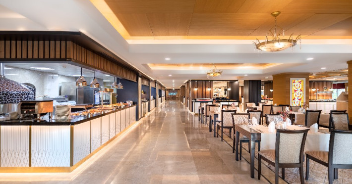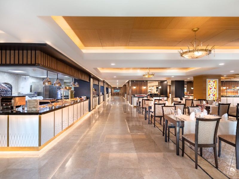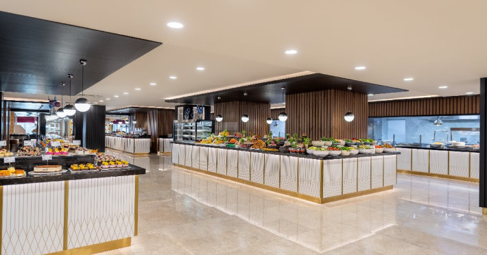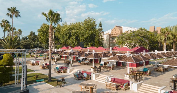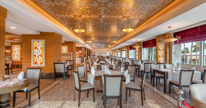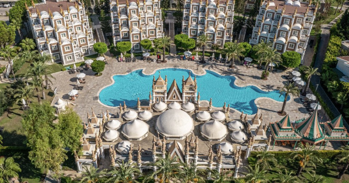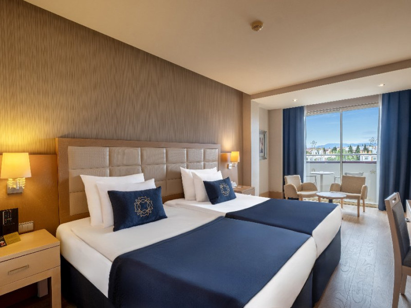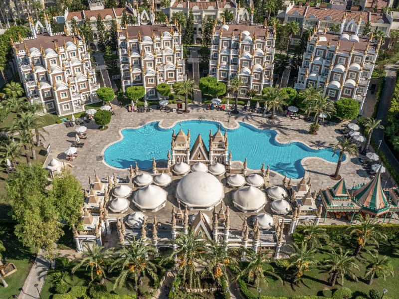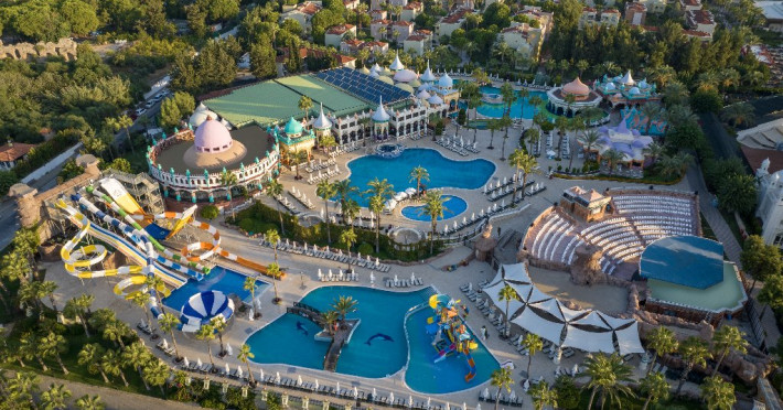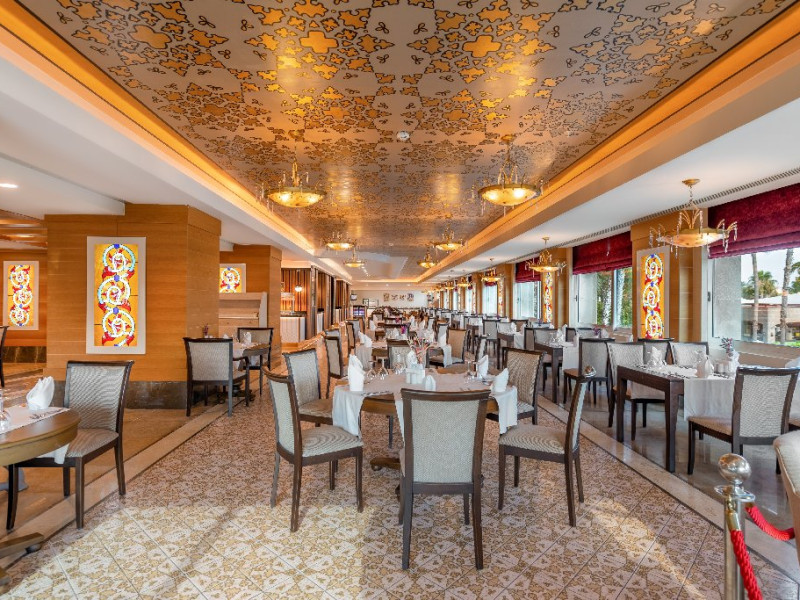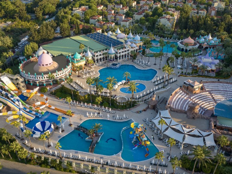 Facilitati hotel: Hotelul pune la dispozitia oaspetilor: restaurant principal, 6 restaurante a la carte, 7 baruri, piscina exterioara, piscina interioara, piscina relaxare, aquapark, animatie, discoteca, mini si junior club, mini zoo, tenis, 3 terenuri fotbal, volei pe plaja, aerobic, sala fitness, centru Spa.