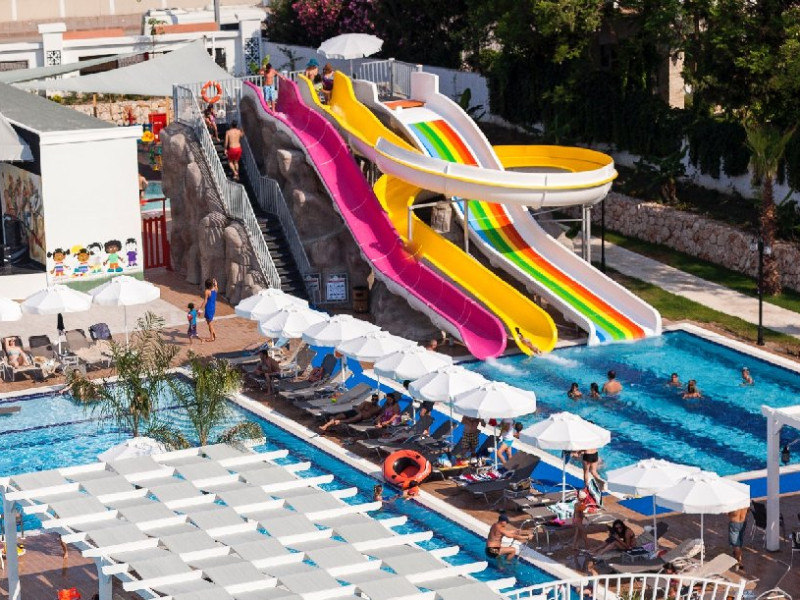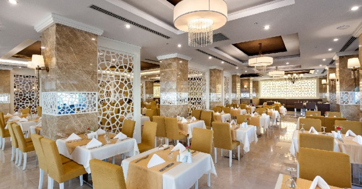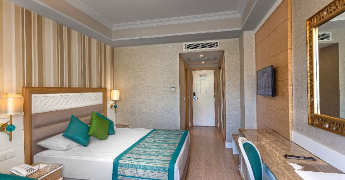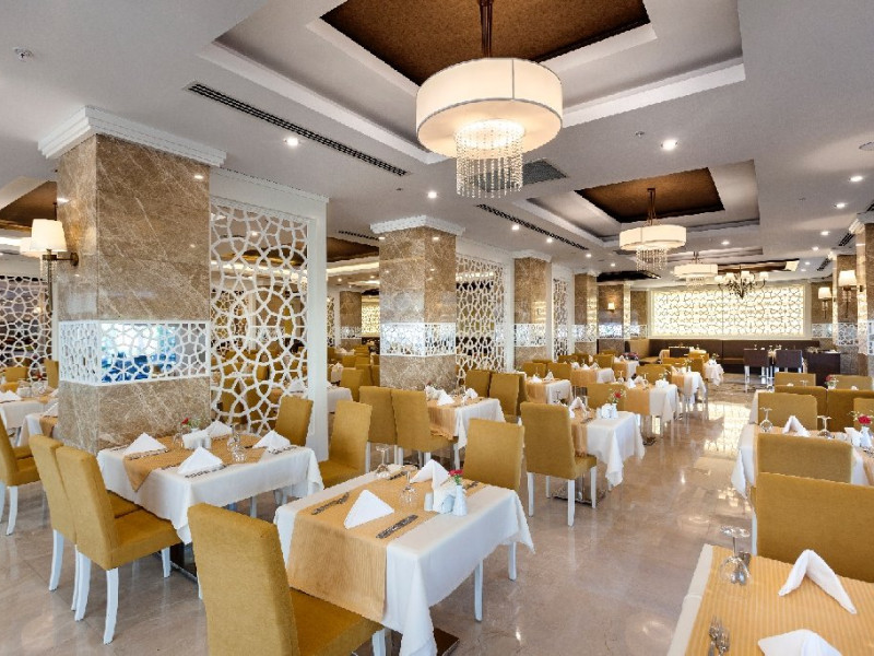 Facilitati hotel: Hotelul ofera oaspetilor sai urmatoarele facilitati: restaurant principal, 2 restaurante a la carte,  (italian si turcesc), patiserie, 4 baruri, piscina exterioara pentru adulti, piscina pentru copii, piscina cu tobogane, piscina interioara pentru adulti si copii, sali de conferinta, gimnastica la piscina, voley pe plaja, jocuri la piscina, muzica live, program de animatie, centru SPA, fitness, baie turceasca, internet wi-fi in lobby, tenis de masa, darts, basket, mini club (4-7 ani), junior club (8-12 ani), club pentru adolescenti (13-17 ani).