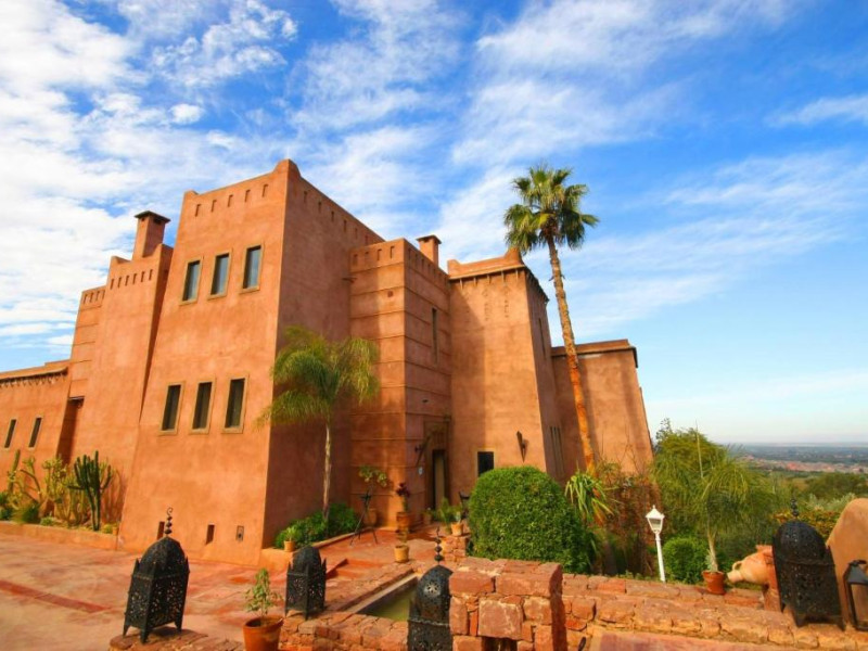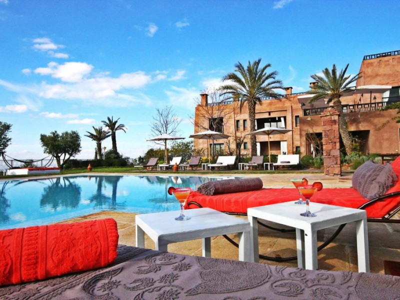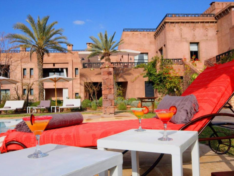 Kasbah Agounsane is a luxurious guest house located in the Ourika Valley, a 30-minute drive from Marrakech. Its furnished lounge/terrace sits in the courtyard with its lush gardens and swimming pool.