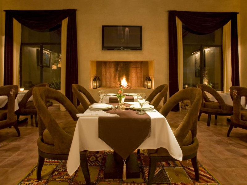 The elegant bar and restaurant is open for guests of Kasbah Agounsane. You can enjoy a drink or meal on the terrace under the stars and overlooking the valley.