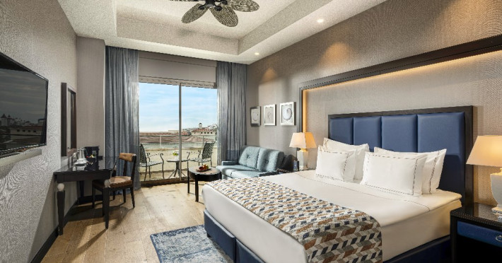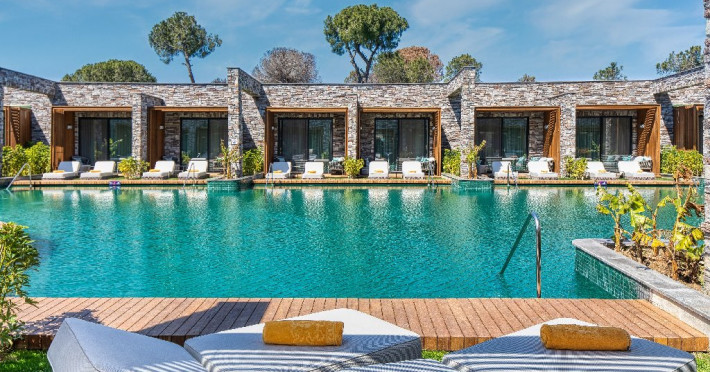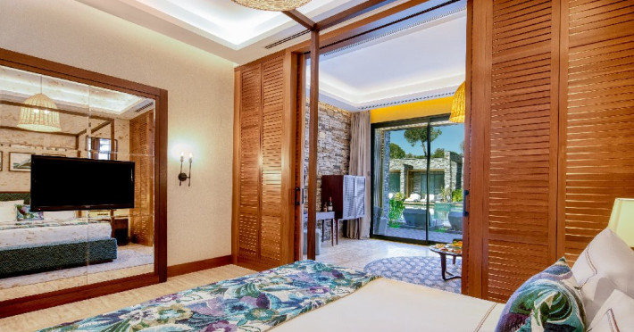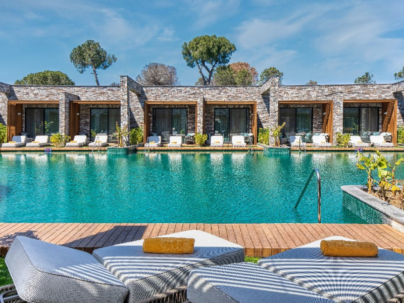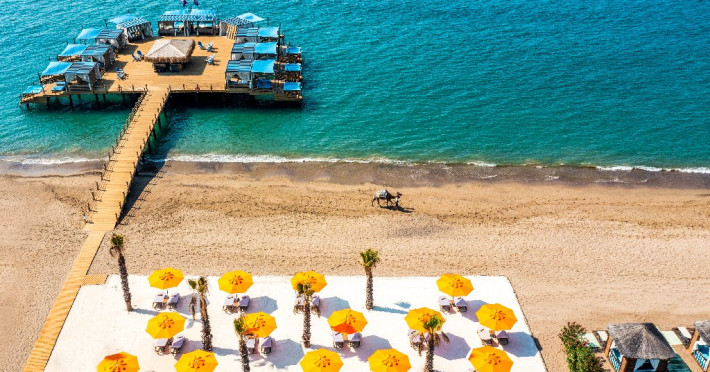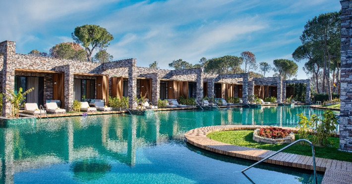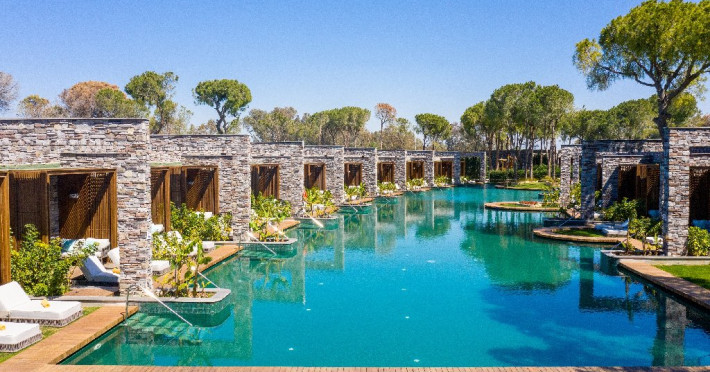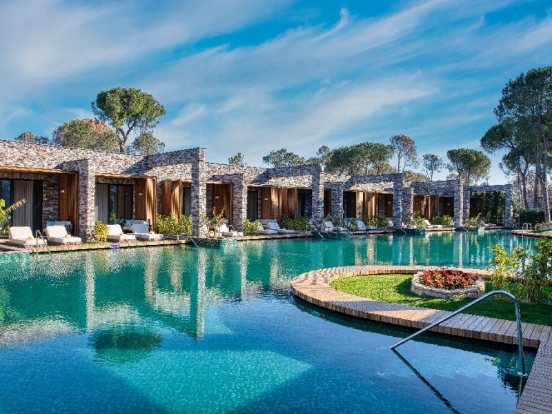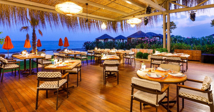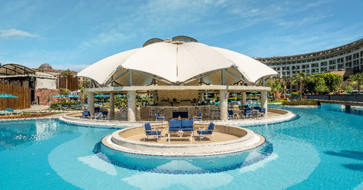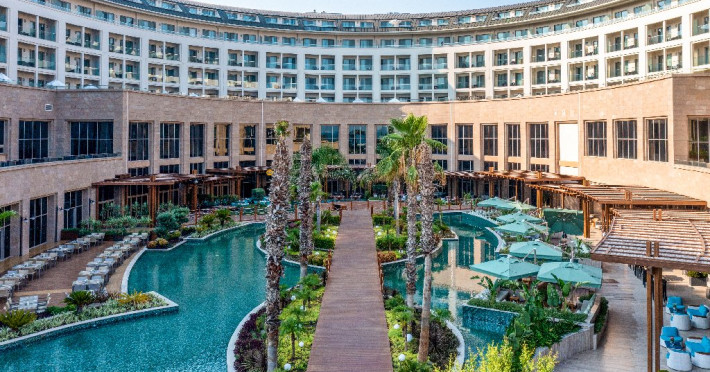 Facilitati hotel:Hotelul ofera oaspetilor sai urmatoarele facilitati: 5 restaurante a la carte (Italian Serafina, Asian Yada Sushi, Steak House , Develi Kebab 1912 , Mezo Fish Ala carte), 7 baruri, Street Food Corner, patiserie, fresh-uri din fructe, cocktailuri, discoteca, muzica live, programe de animatie, petreceri pe ponton, spectacole de dans, darts, gimnastica in apa, tenis de masa, aerobic, boccia, voley pe plaja, zumba, centru fitness, terenuri de tenis, terenuri de fotbal, internet wi-fi, centru spa (suprafata 3500 mp), 2 piscine interioare, sauna, baie turceasca, aquapark cu 8 tipuri de tobogane, piscina exterioara (3000 mp), piscina pentru copii, sali de conferinta.