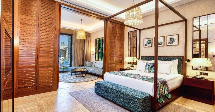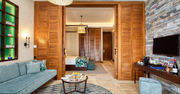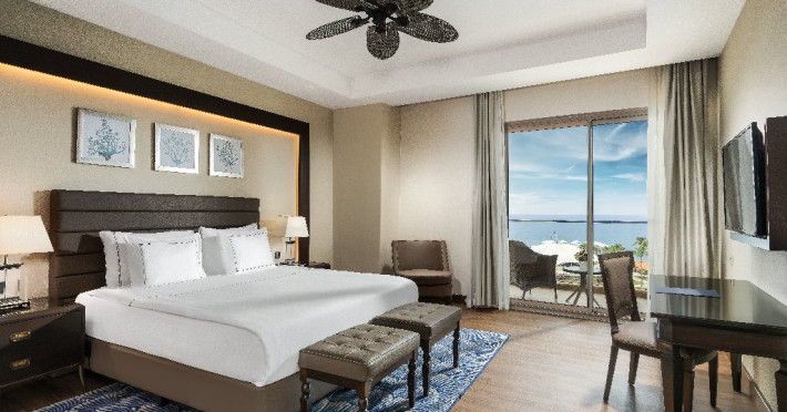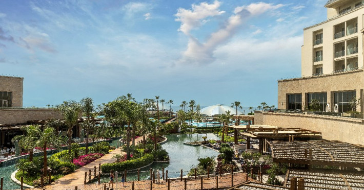 Descriere : Hotelul a fost deschis in anul 2013, construit pe o suprafata de 120.000 mp, dispune de 626 camere (493 camere in cladirea principala cu 5 etaje, 120 camere Luxury Lagoon Suite si 13 in vile).