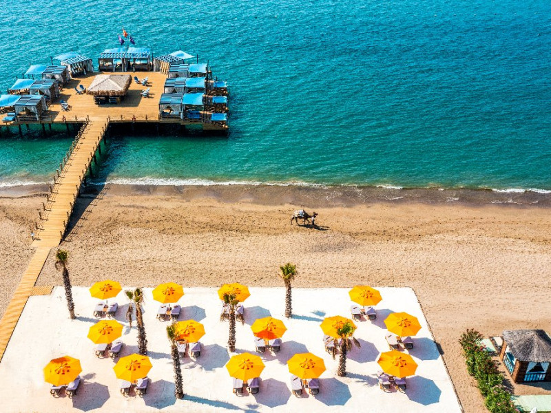 Plaja: Plaja hotelului este cu nisip, are o lungime de 200 m si dispune si de ponton. Umbrelele si sezlongurile sunt gratuite la plaja. Pentru prosoape se percepe depozit.