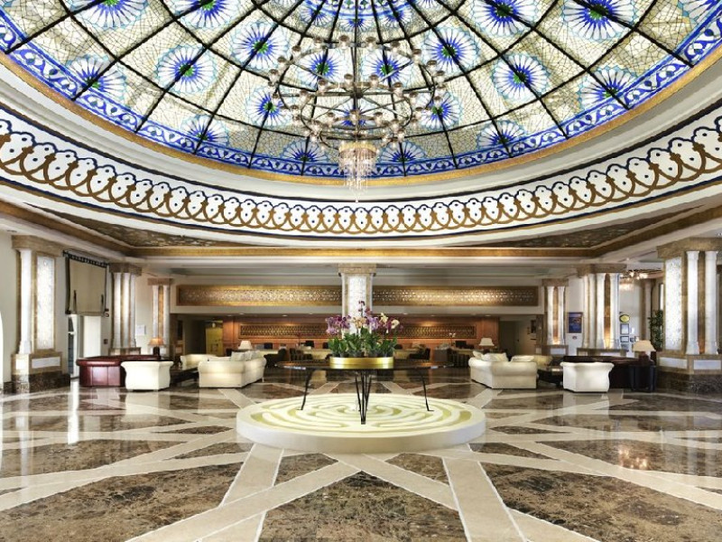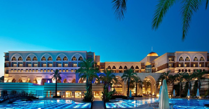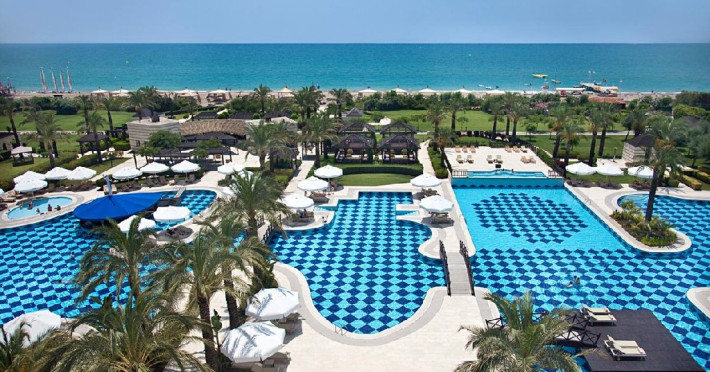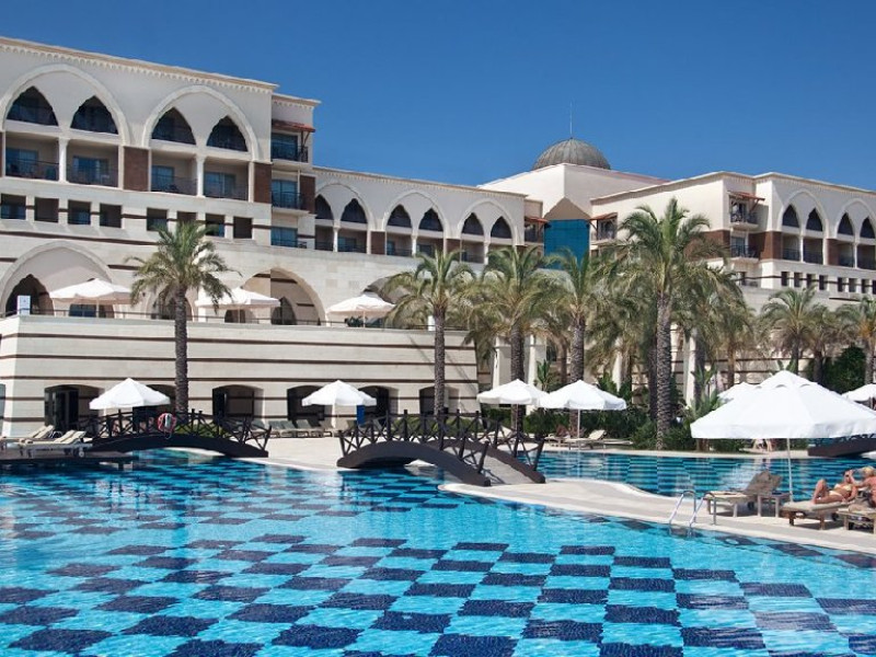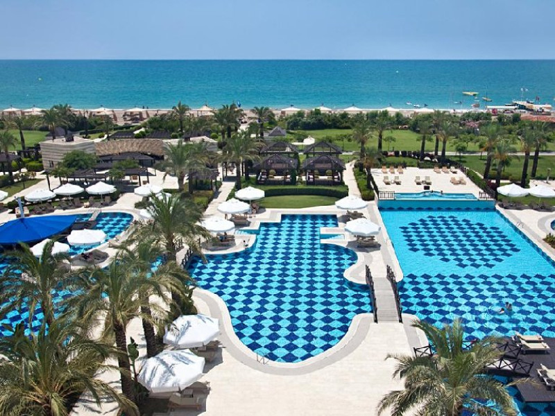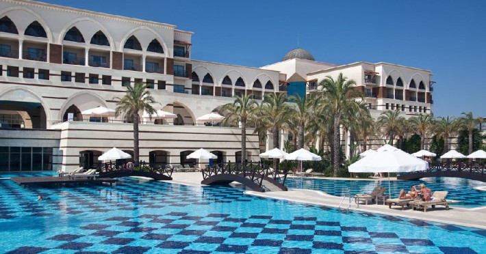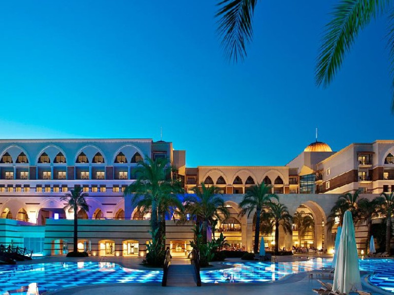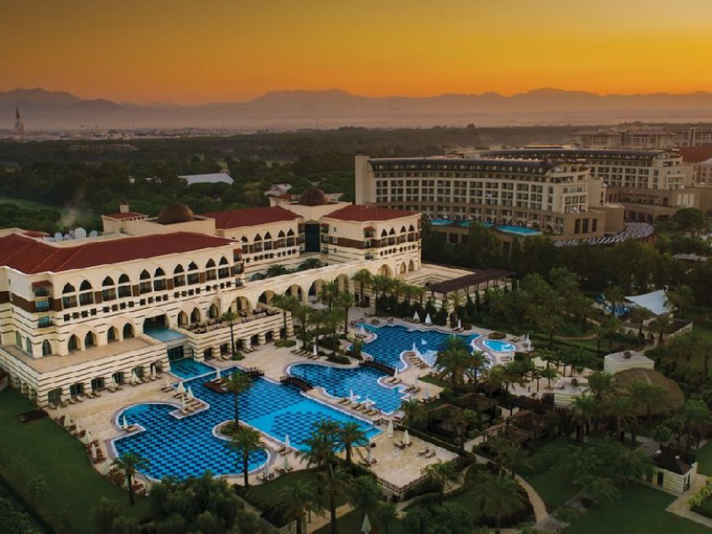 Facilitati hotel: Hotelul ofera oaspetilor sai urmatoarele facilitati: restaurant principal, 3 restaurante a la carte (turcesc, italian, asiatic), 5 baruri, piscina exterioara, centru Spa (3.600 mp), saune, piscina interioara, baie turceasca, jacuzzi, coafor, centru comercial, inchirieri masini, centru business modern si complet echipat, club pe plaja, trei terenuri de tenis, club pentru copii, piscina exterioara si interioara pentru copii, programe de animatie, gimnastica, teren de fotbal, teren de tenis, terenuri de golf.