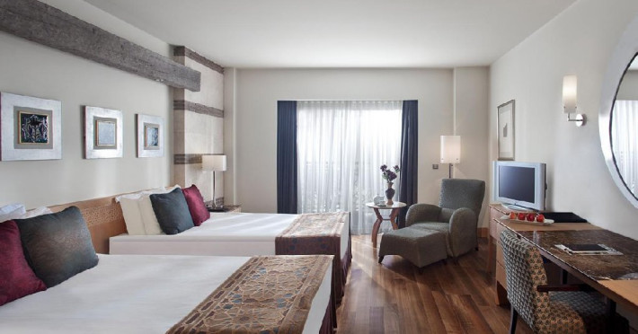 Dotari camere: Camerele hotelului dispun de: telefon, televizor LCD, minibar, seif, aer conditionat, halat de baie, papuci de baie, balcon, parchet, acces internet.