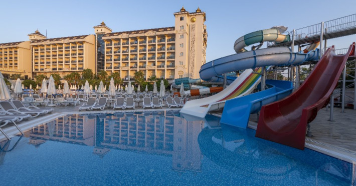 Facilitati hotel: Hotelul ofera oaspetilor sai multiple facilitati: restaurant principal, 3 restaurante a la carte (italian, turcesc, mexican - cu rezervare), mai multe baruri, patisserie, aqua park cu 2 tobogane pentru adulti si unul pentru copii, piscina exterioara pentru adulti, piscina pentru copii, gimnastica, fitness, tenis de masa, darts, boccia, volei pe plaja, miniclub, loc de joaca, piscina interioara, centru spa, tenis de masa, muzica live, discoteca, sala de conferinte, piscina pentru copii, tobogan, mini club, loc de joaca, babystitter, carucior pentru copii. Servicii cu plata: cabinet medical, masaje si tratamente corporale, darts, bowling, internet, bauturile de import si la sticla, freshuri, roomsevice, biliard, internet, curatatorie, sporturi nautice motorizate.
