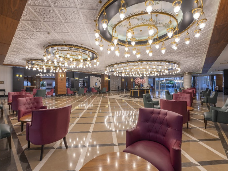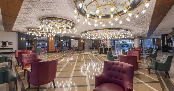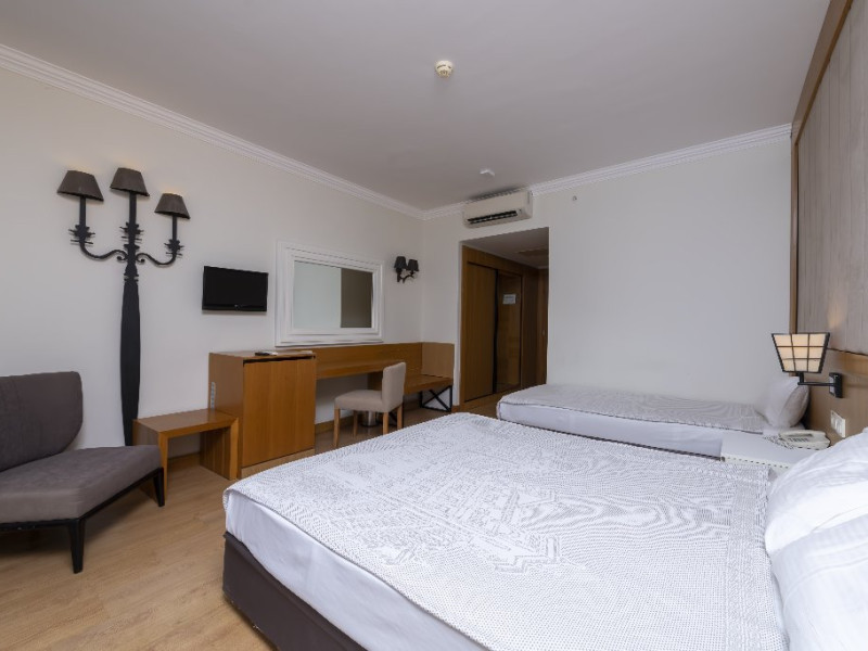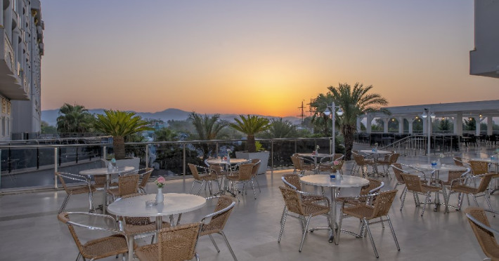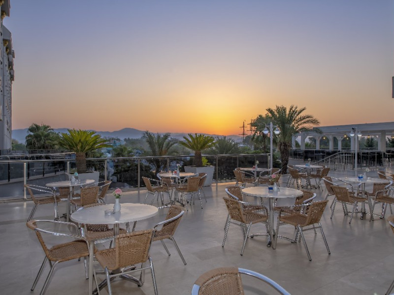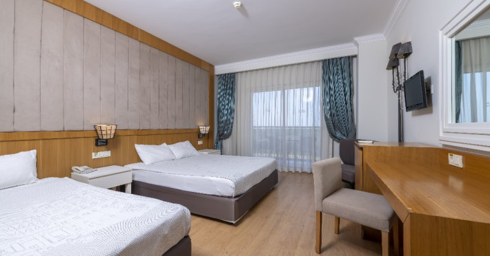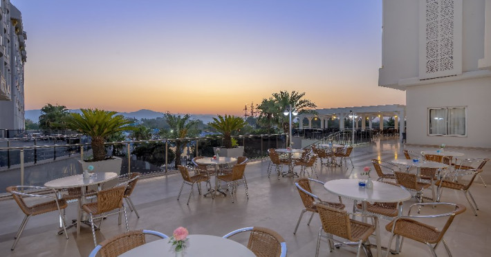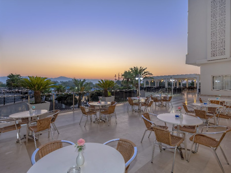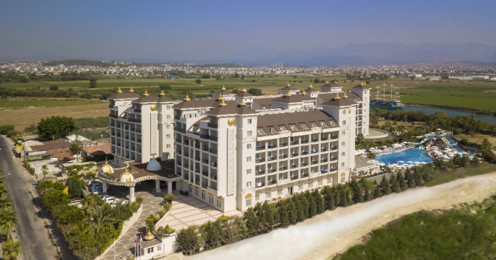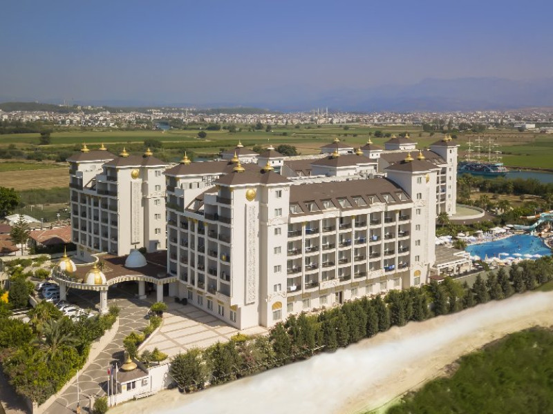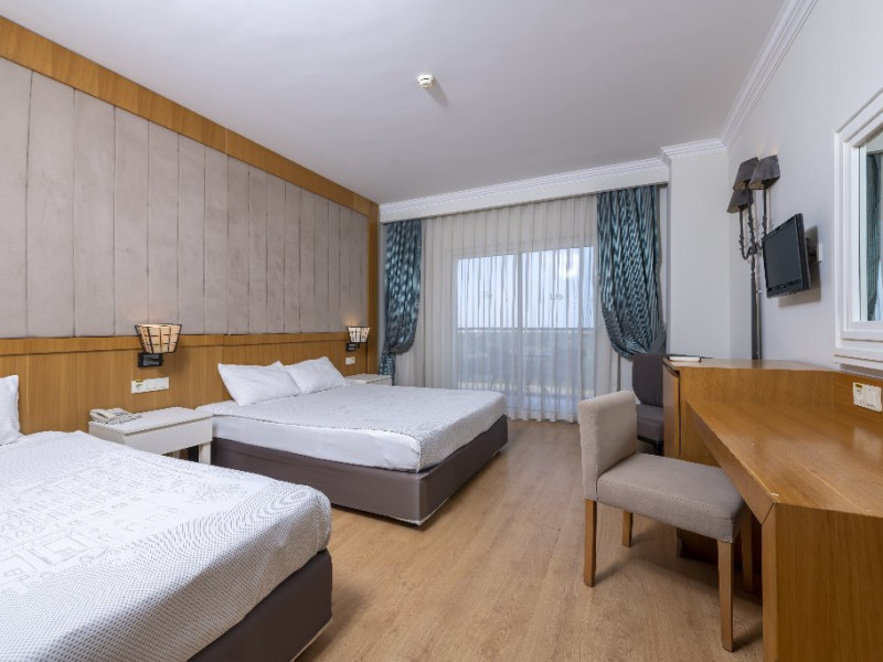 Descriere: Hotelul situat foarte aproape de centrul orasului Side, a fost construit in 2012, pe o suprafata de 25.000 mp, este format din 2 corpuri cu cate 6 etaje si dispune de 418 camere. Hotelul se renoveaza inainte de sezonul de vara 2024.