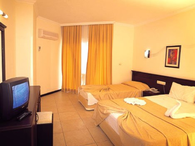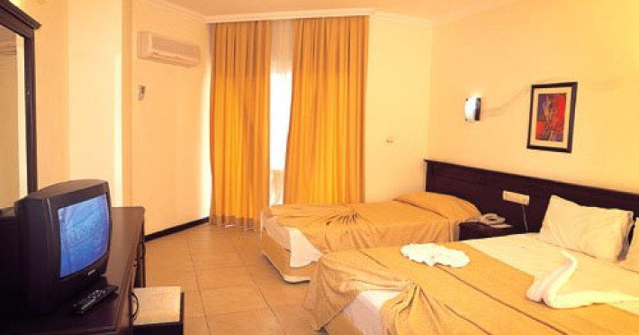 Hotelul dispune de 140 camere, repartizate astfel: - 136 standard room - 4 suite room cu 2 camere (hol, dormitor cu usa, jacuzzi, 2 TV, max. 5 pers., 60 mp). Localizare: peste drum de mare, in localitatea Beldibi, la 13 km de orasul Kemer si la 40 km de aeroportul Antalya. Dotari camere: televizor, telefon, aer conditionat centralizat, minibar, baie, dus, uscator de par, seif, balcon, gresie/mocheta. Facilitati hotel: 2 restaurante (unul in interior si altul in exterior), 3 baruri, 2 piscine exterioare, 2 tobogane cu apa, sauna, baie turceasca, fitness, aerobic, tenis de masa, darts, muzica live, program de animatie, discoteca, parcare, schimb valutar. Contra cost: masaj, sporturi acvatice, cabinet medical, magazin, spalatorie, rent-a-car. Plaja cu pietris. Bar pe plaja. Umbrelele, sezlongurile si saltelele sunt gratuite. Alte informatii: - in restaurante tinuta este obligatorie. Hotelul isi rezerva dreptul de a modifica conceptul in timpul sezonului fara a anunta in prealabil aceste modificari