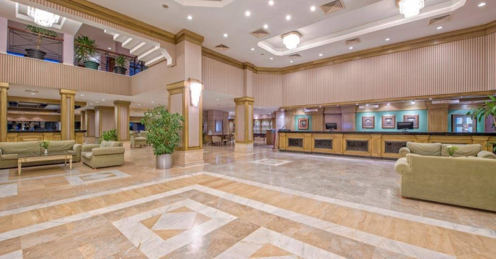 Facilitati hotel: Oaspetii beneficiaza de restaurant, baruri, piscine exterioare, piscina interioara, tobogane, spa, fitness, teren de tenis, billiard, mini club, piscina.
