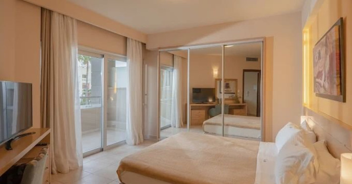 Dotari camera: Hotelul dispune de aproximativ 45 de suite si junior suite luminoase si spatioase. Camerele sunt dotate cu aer conditionat, Wi-Fi gratuit, TV prin satelit, mini frigider, seif si baie privata cu uscator de par si articole de toaleta. Fiecare unitate dispune de balcon sau terasa, multe dintre camere oferind vedere catre mare sau catre imprejurimi.